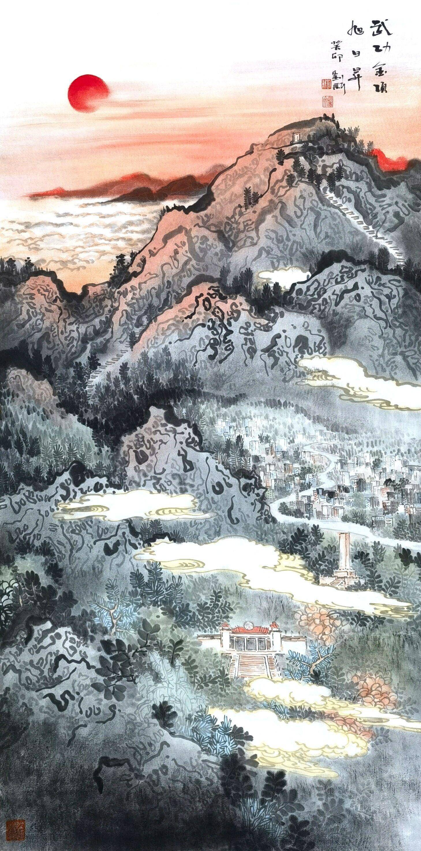 画家刘新创作《武功金顶旭日升》祝愿江西旅游复苏旺