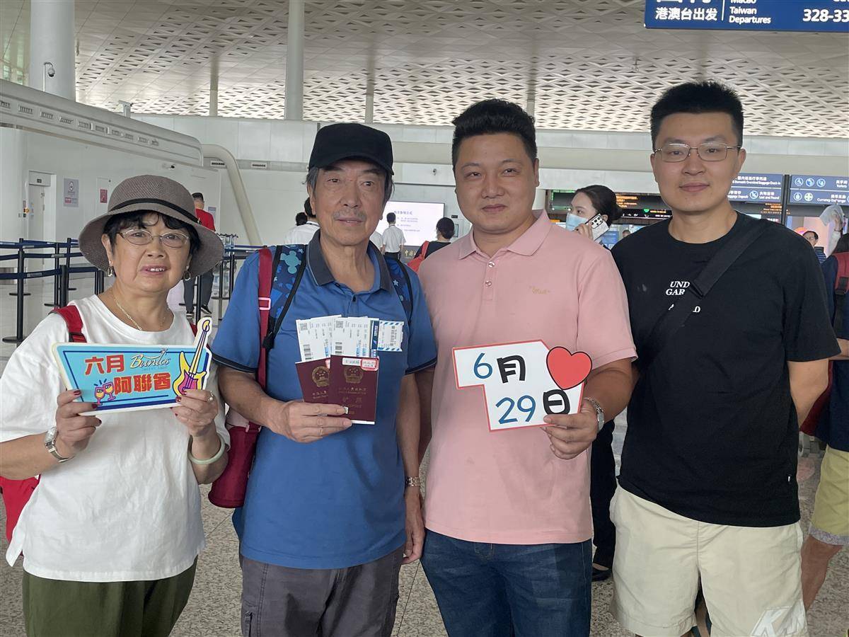 旅客出发前开心合影(极目新闻记者石倩摄)