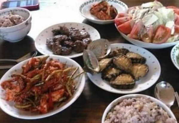 很多韩剧里面都有一些财团,这些财团家里都是很有钱的,就算是早餐,那也是吃得很丰盛,还会有鲍鱼,看看这一餐,也是有鲍鱼,但是并看不出一丝高级了。再看看韩国的外卖便当,真的是很奇怪了,跟中国完全不一样,这小菜就好几种,主菜就没多少了,看着很丰盛,其实很寒酸。