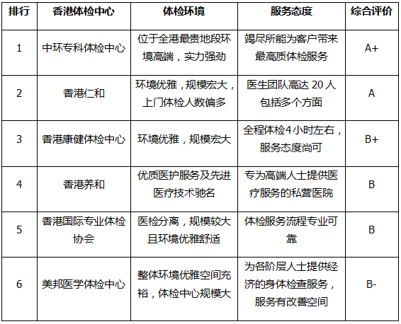 香港体检中心排名着重看两点