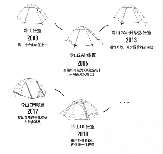 2003年冷山帐篷诞生,受到广大『驴友』的喜爱,创造80W+顶的销售传奇。