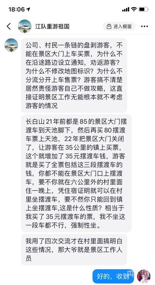 央广网长春6月29日消息(记者张学龙)长白山景区是吉林省的知名景点之一,近日,却有知名博主吐槽,“在长白山遇‘坑’,最终放弃了去天池的计划。”并质疑,知名景区的服务意识在哪里?
