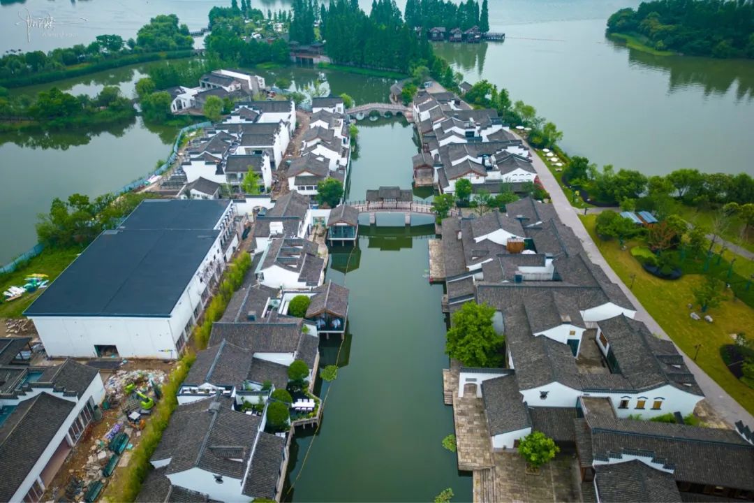 航拍视角下,水街最经典的两座“古桥”清晰可辨,也可以看到这儿确实没有什么行人,偶尔有电瓶三轮车经过,也可能只是里面商家的工作人员。