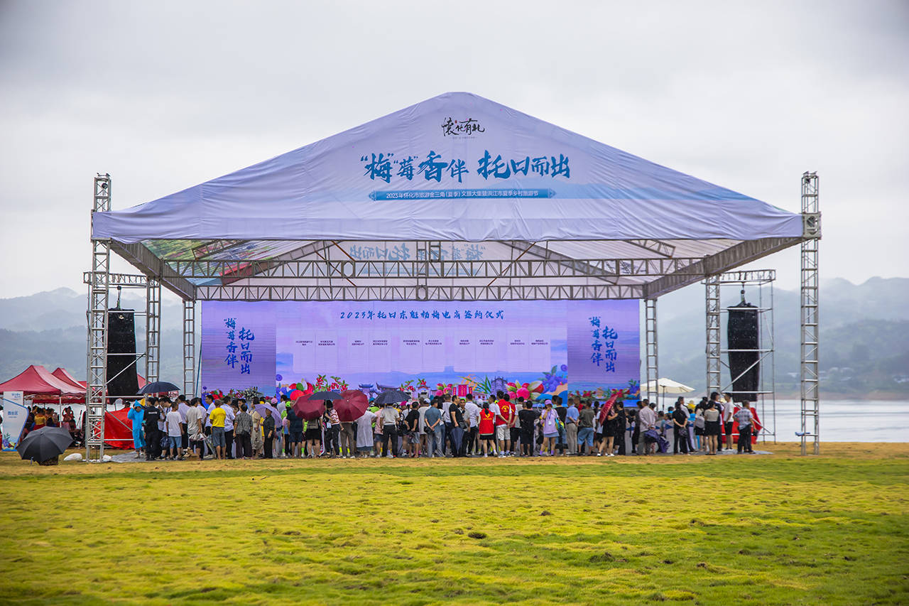 在2023洪江市夏季乡村旅游节开幕,现场人声鼎沸,热闹非凡。”围绕洪江市托口杨梅、蓝莓两大产业展开,举办了特色冰饮集市、啤酒音乐节等八项特色活动,在开幕式上,还推出了几条怀化旅游精品路线,旅游线路的发布,不仅让人欣喜丰收的同时也恰到好处地串联了各大旅游景点,包括自然风光、民俗文化和美食体验等。