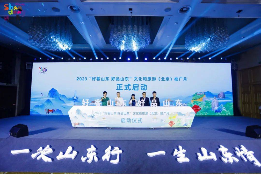 活动现场举行2023“好客山东 好品山东”文化和旅游(北京)推广月启动仪式,王鹤云,刘彬礼,王春生,胡虎,著名媒体人、并肩科技联合创始人李小萌,演员孙涛共同启动。