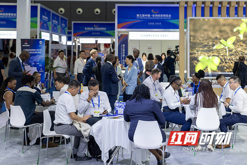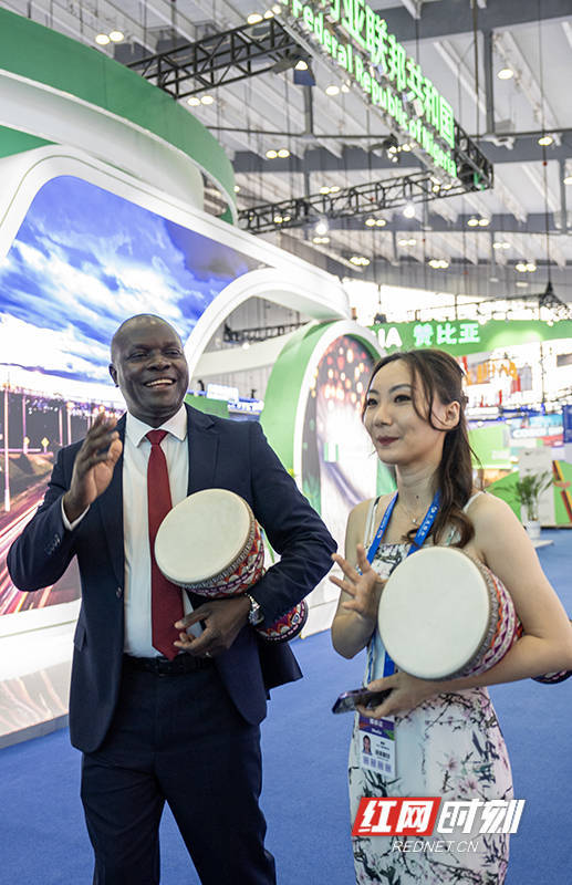 红网时刻新闻6月29日讯(记者 张必闻)6月29日至7月2日,主题为“共谋发展、共享未来”的第三届中国—非洲经贸博览会在湖南长沙开幕。10万平方米的展示区将集中展示非洲的红酒、咖啡、手工艺品等特色商品,以及中国的工程机械、医疗器械、日用百货、农机设备等。巨大的展示空间、天南海北的客商。非洲小哥开心的敲着鼓儿来“湘”会。