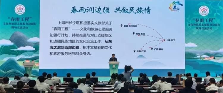 据悉,“春雨工程”——文化和旅游志愿服务边疆行由文化和旅游部牵头,自2011年起会同有关部门联合实施,十余年来,累计组织文化和旅游志愿者约30万名,开展活动近3000场,惠及边疆各族群众2000余万人次。今年,文化和旅游部联合国家民委创新实施“春雨工程”,重点开展文化惠民志愿行、艺术创作志愿行、公共文化志愿行、文化传承志愿行、产业共创志愿行等5个方面志愿服务活动。此次大会上,中共长宁区委宣传部副部长、长宁区文旅局党组书记、局长朱剑伟在活动中作交流发言,介绍了长宁区落实“春雨工程”的相关工作。