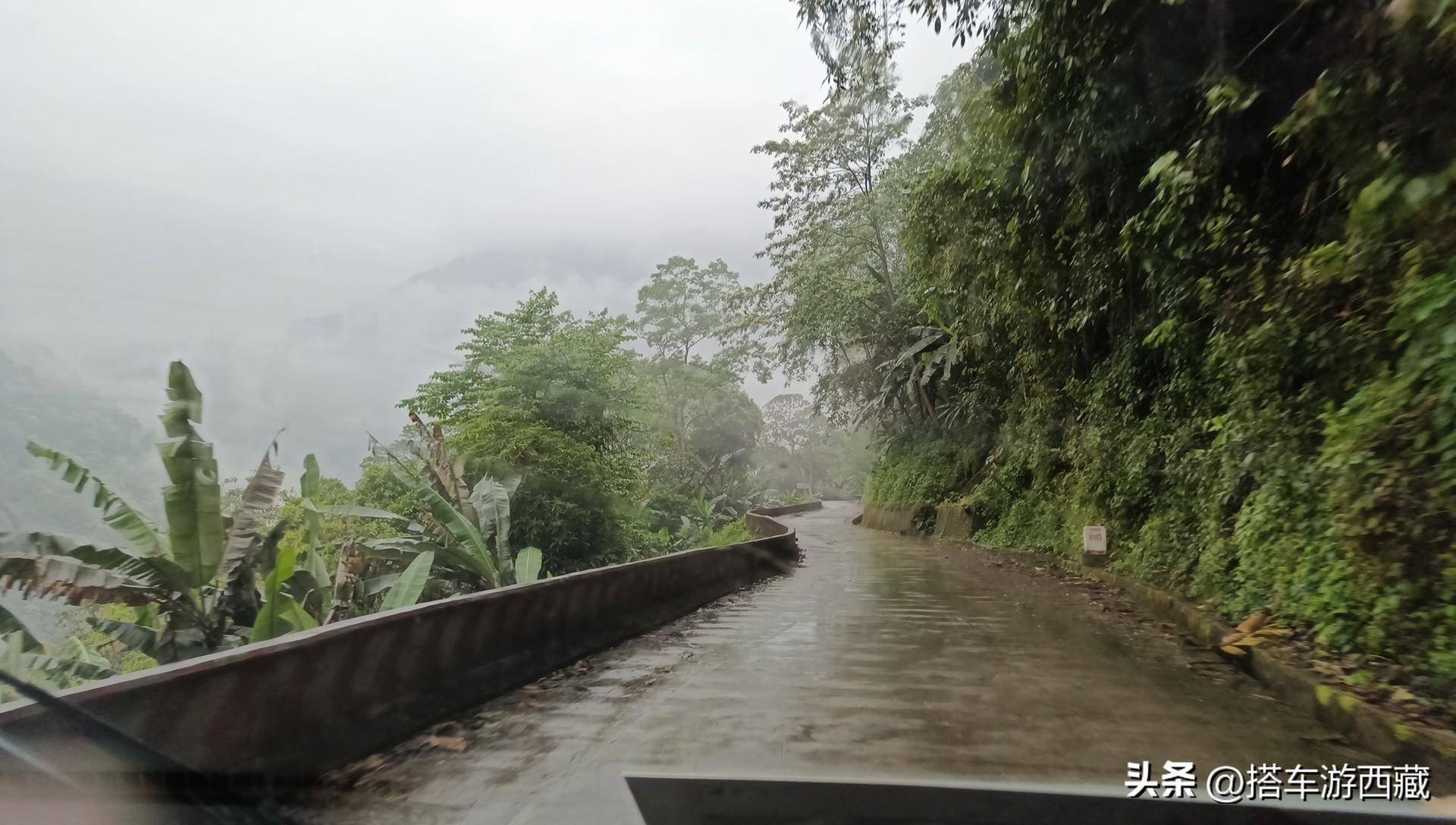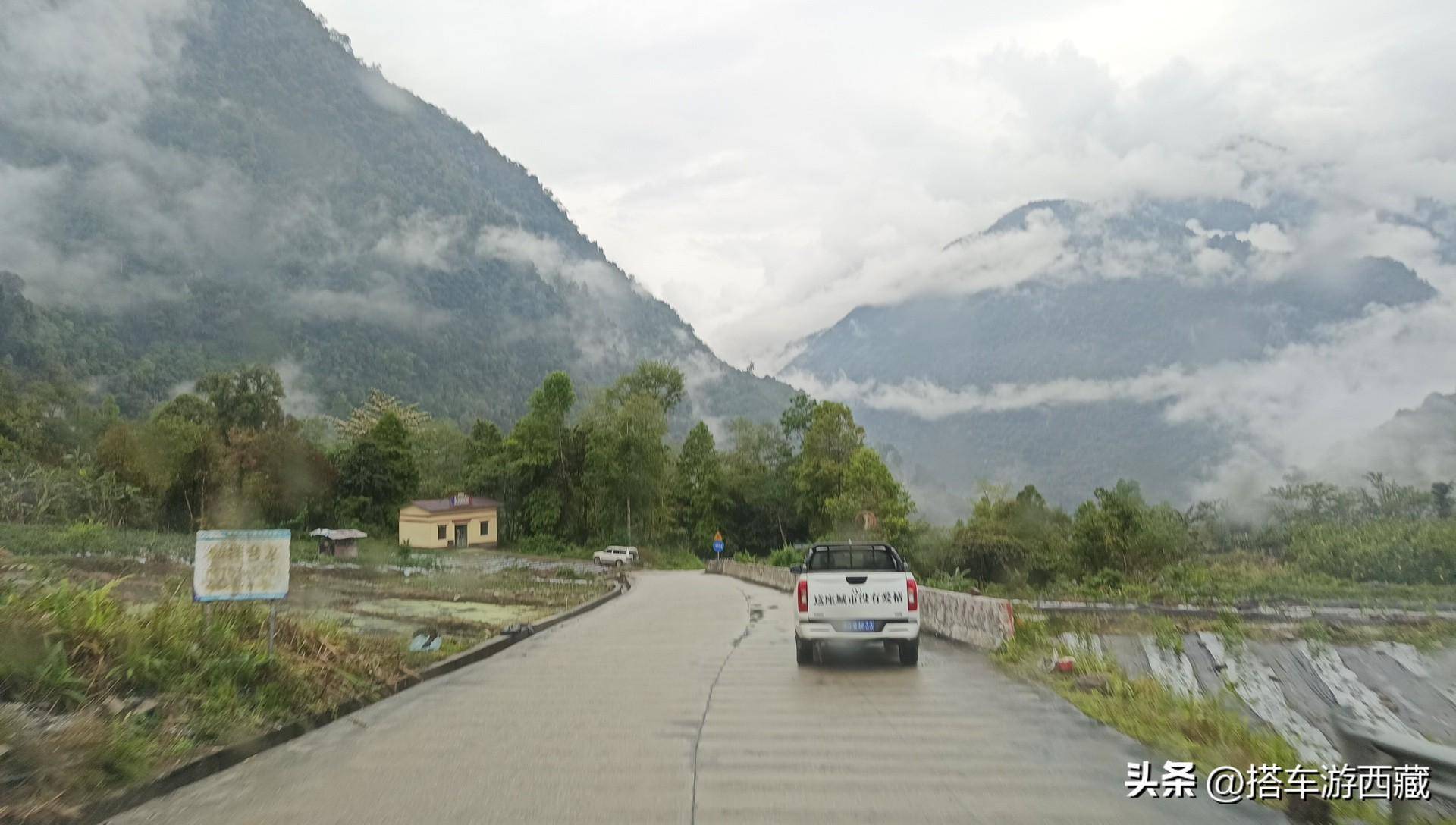其实我对这个村子了解不多。我刚刚查了一下,公交车有这样的路线。我也希望通过这种方式更多地了解墨脱。从墨脱县城到多龙岗村全程76公里,票价40元。司机就是前天去北崩带我们去见南迦巴瓦的那个藏族小伙子。车上还有另一个男孩,应该是他的同事。他今天没开车,就来玩公交车了[思考]。早上一出门,就下起了雨,上了车,雨越下越大。第一次是陌生人,第二次是熟悉,第二次开这个司机的车,人们看到我就好像看到了亲人一样[呲牙]。