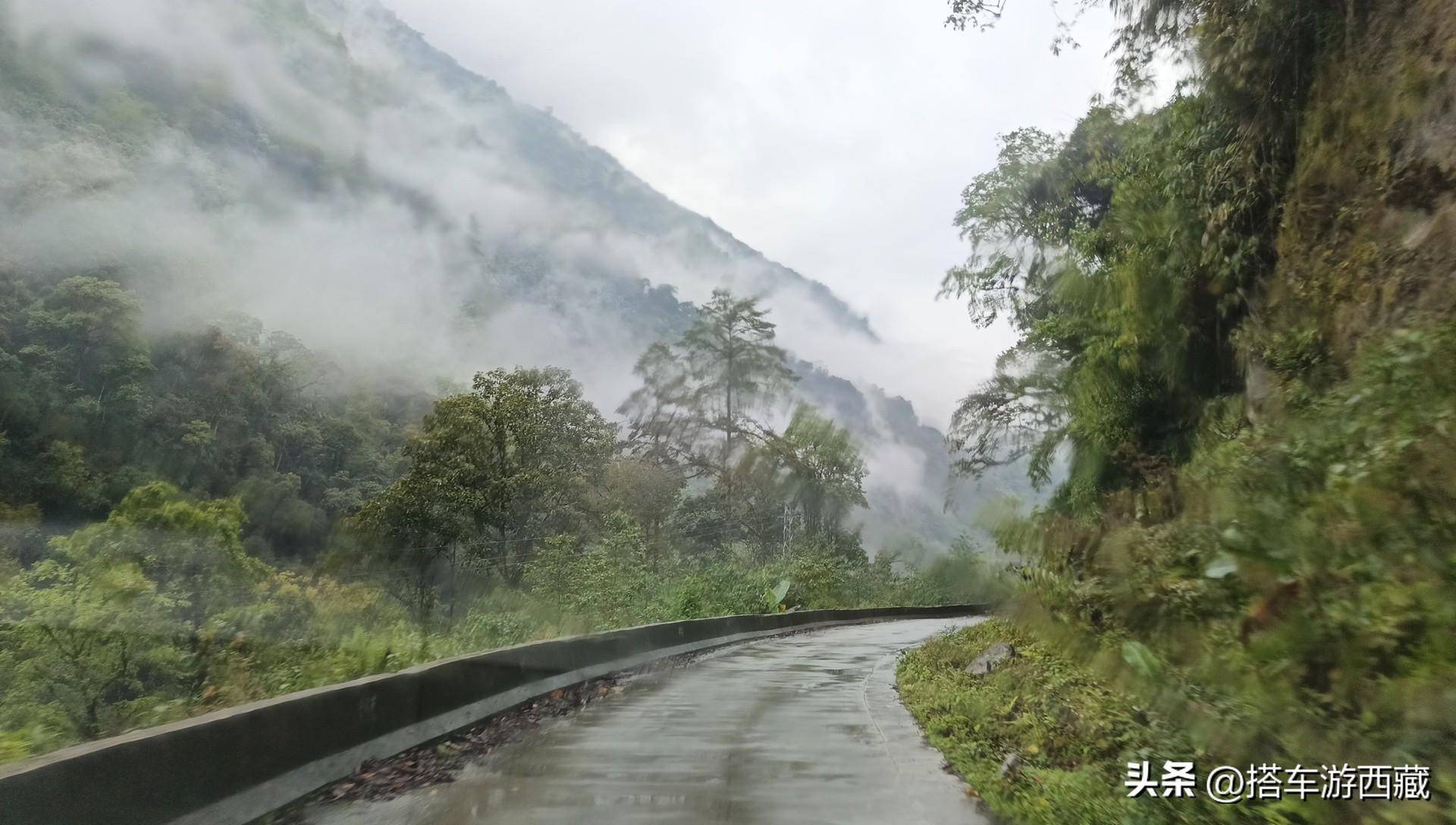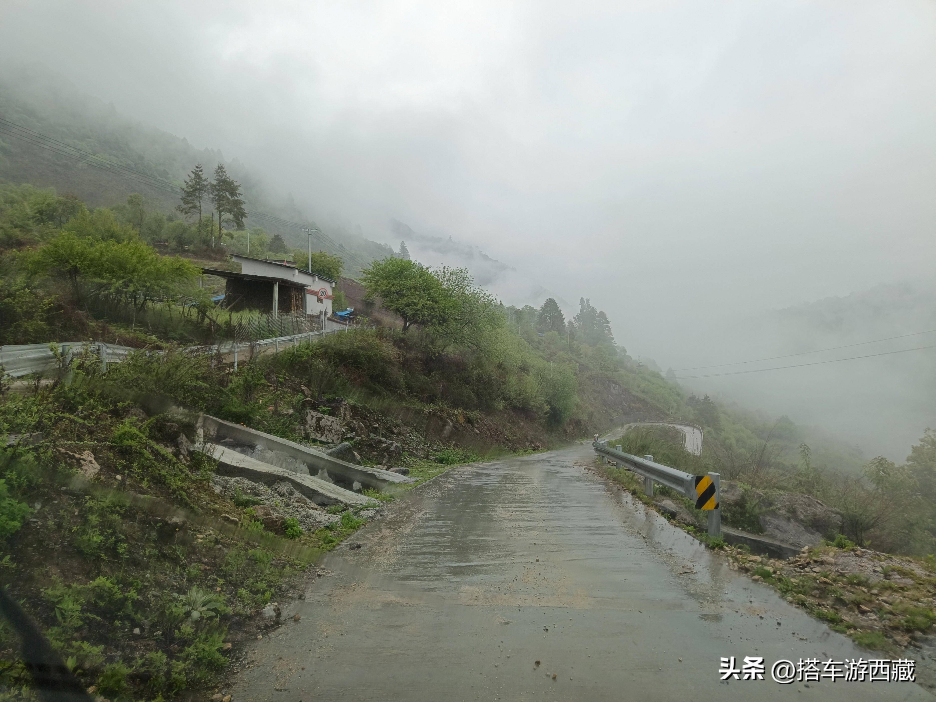 司机很健谈,给我讲了很多藏族的民俗风情和时尚。车子行驶在路上,不时能听到杜鹃的叫声。司机问我,你听到声音了吗?他告诉我杜鹃在藏语里叫“库秀”。在他们这边,如果早上吃饱后听到布谷鸟的叫声,一年之内都不会挨饿。说话间,雨越下越大,整个车厢都充满了雾气。能见度极低,每十米就有一个转弯。