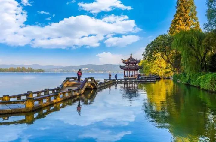 说起杭州,人们第一个想到的可能就是西湖。西湖自古以来就是许多人的梦想之地。古代许多诗人写下许多诗篇来赞美他们所看到的西湖之美。据苏轼诗词描述,他眼中的西湖是这样的:晴天的西湖,在阳光的照耀下,波光粼粼,犹如月亮的鳞片,双眸闪闪发光,美丽极了。