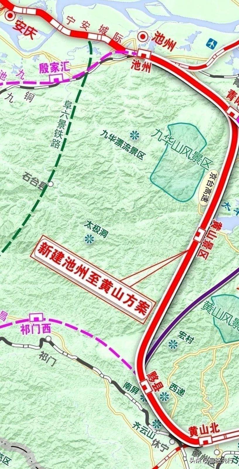 赤黄高铁全长125.1公里,设计时速350公里,建设工期4.5年,预计投资183.7亿元。全线包括池州站(既有)、九华山站(新建)、黄山西站(新建)、黟县东站(既有)。黟县东站至黄山北站与黄昌高铁同线,并预留直达线路建设条件。池黄高铁在池州站与宁安客运铁路相接,在黄山北站与合福高铁相接。