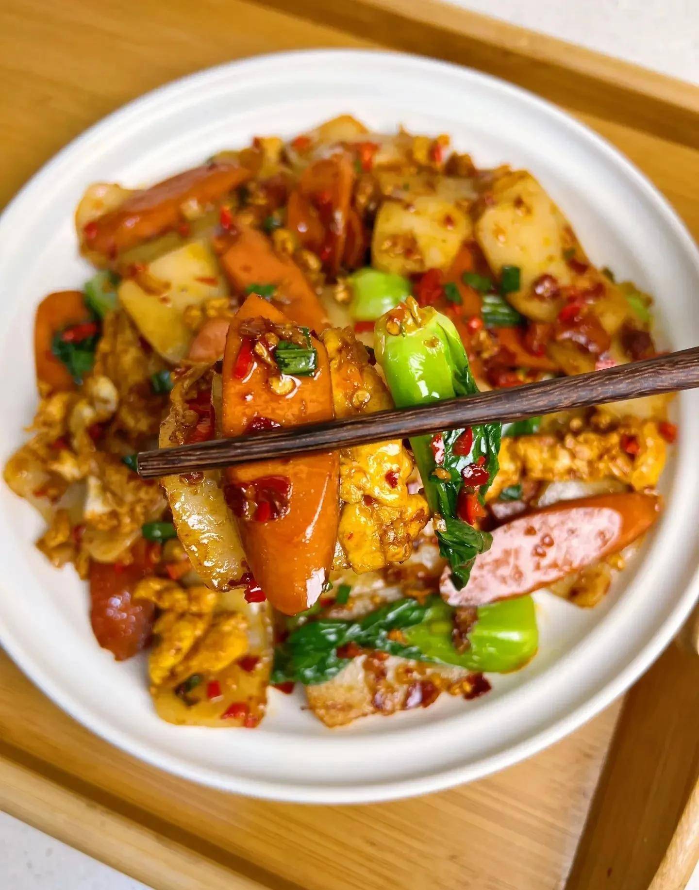 这样,一道地道的江西辣炒年糕就做好啦!准备来吃吧,快看看有没有食欲!