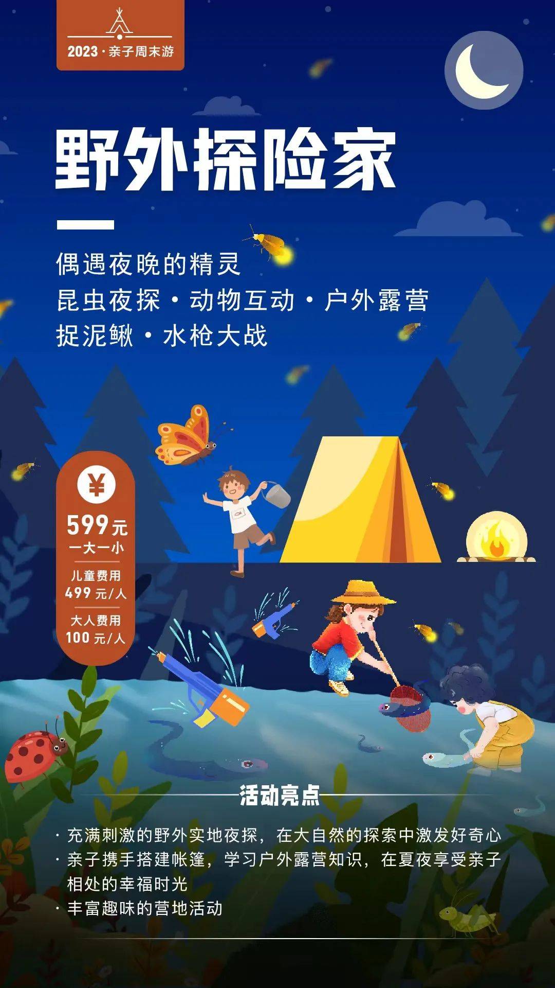 ·夜探设备:每人1个头灯(不赠送),每个孩子1个昆虫观察盒(可带走);