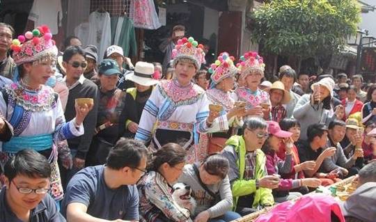 4月30日晚,在大理巍山古城南诏胡同蒙化食府,一众网红达人依次品尝“南诏王宴”美味佳肴。有网红达人一边品尝一边直播,粉丝在线围观纷纷为南诏王宴光芒四射的魅力所折服。