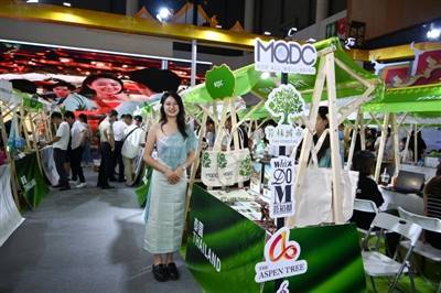 780余平方米的泰国国家馆色调以绿和白为主,60个展台都被展品挤得满满当当,空气中飘着属于热带的甜香。