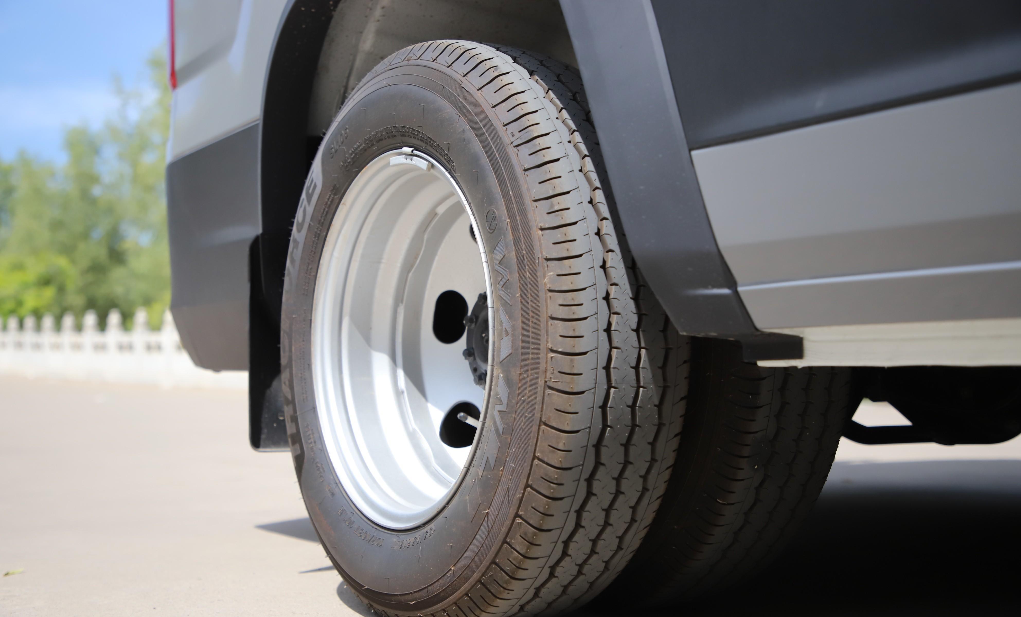 后部两侧车轮,为双胎设计,增强整车在转弯、过沟沟坎坎时车身的稳定性,即使进入涵洞或幽长山路,遇到强烈的侧风也非常平稳。