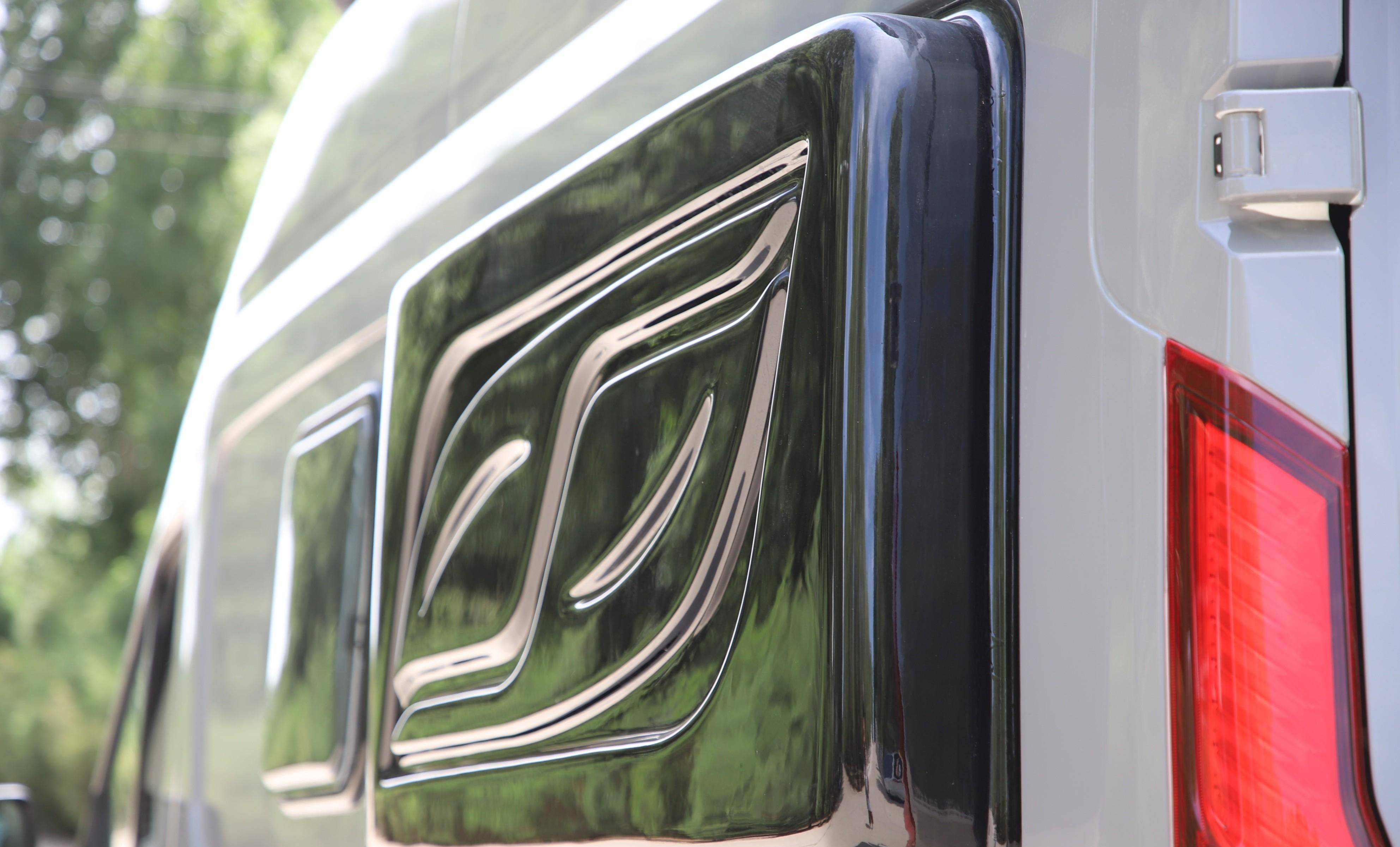 车身后部的两个外拓盲窗,在不影响通过性的情况下,为车内提供更多的空间。