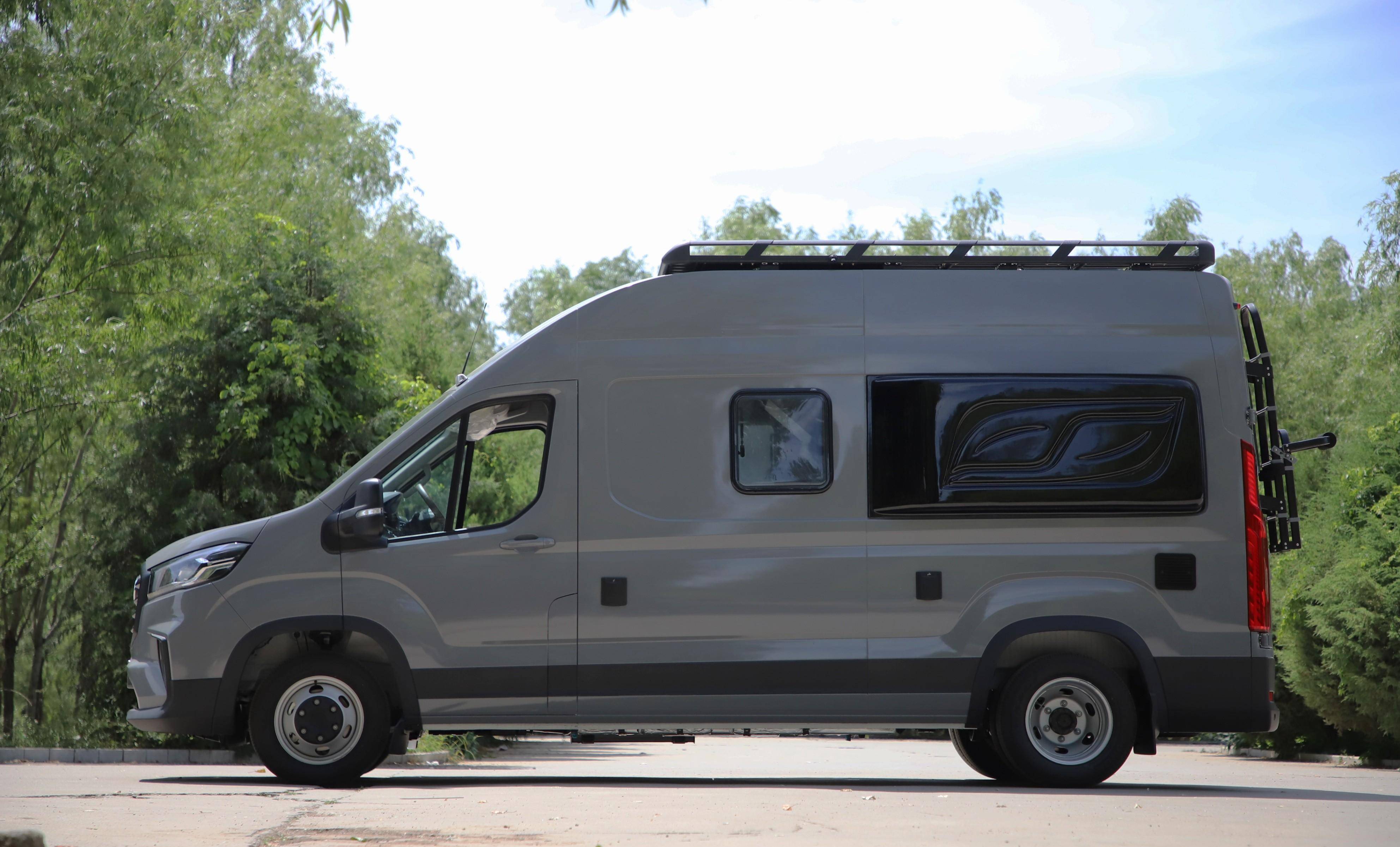 车身两侧底部裙边也做了黑色的设计,搭配黑色的遮阳棚、水电补充口、车窗、外拓盲窗等,车身的层次感和功能性更加分明。