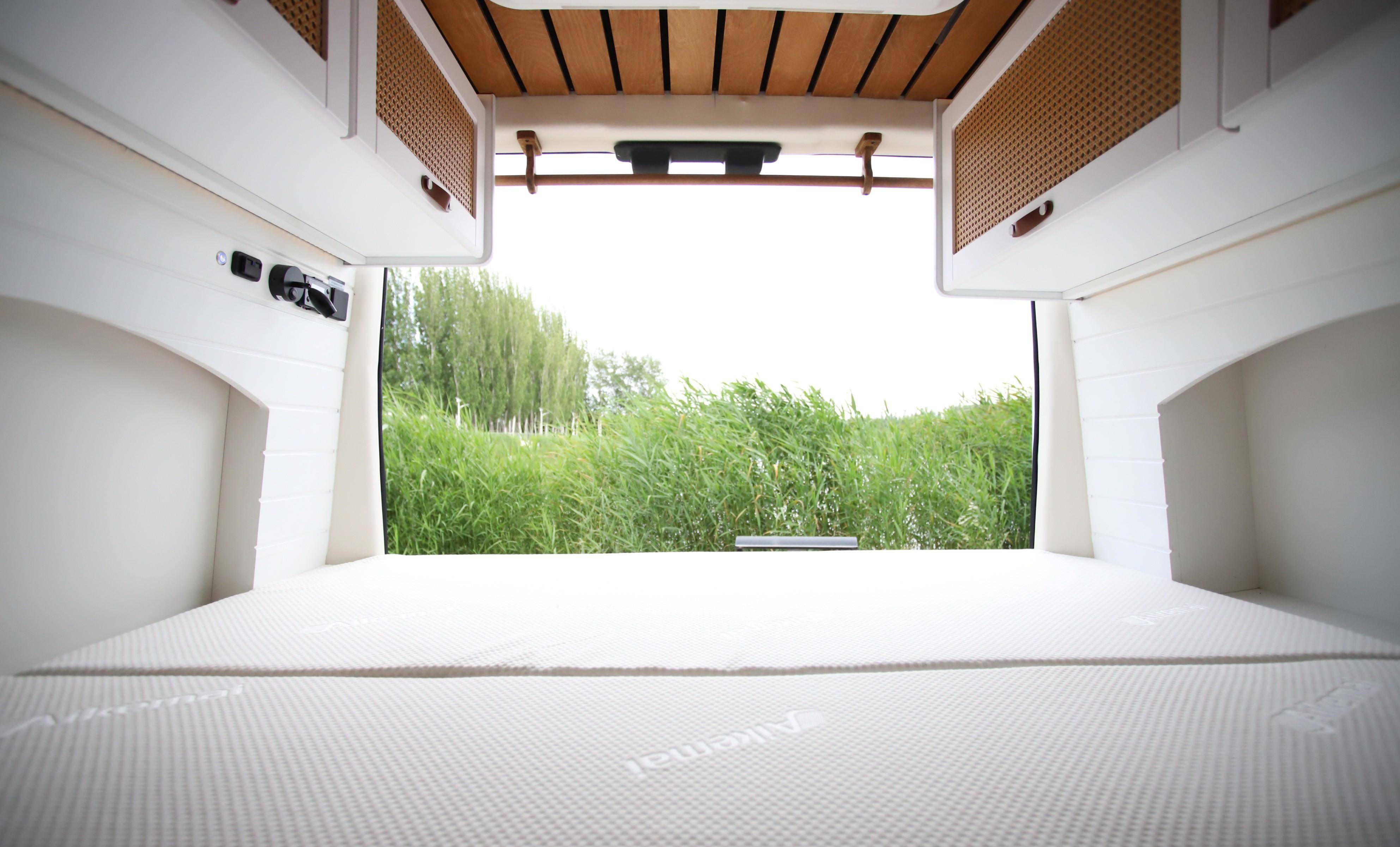 车尾门打开后,床铺空间就非常亮堂了,休息赏景非常不错。