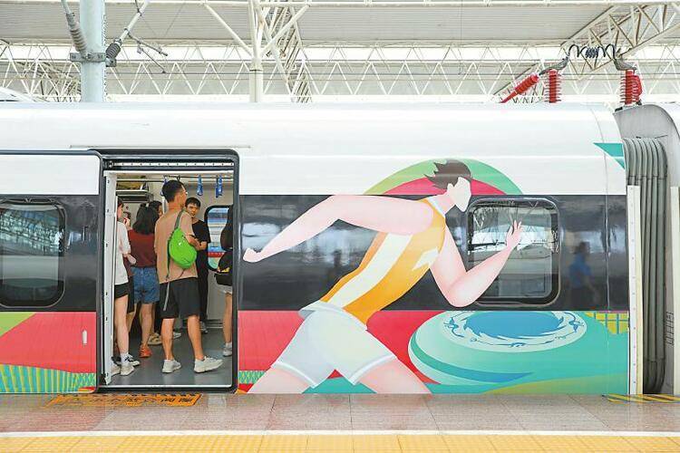 7月,第31届世界大学生夏季运动会将在成都举办,成都市文化广电旅游局联动铁路部门开行“大运号”旅游主题列车,将体育文化与巴蜀文化、熊猫文化等四川特色文化元素相结合,让乘客在旅行中同步感受浓厚的大运会氛围和四川文化魅力。