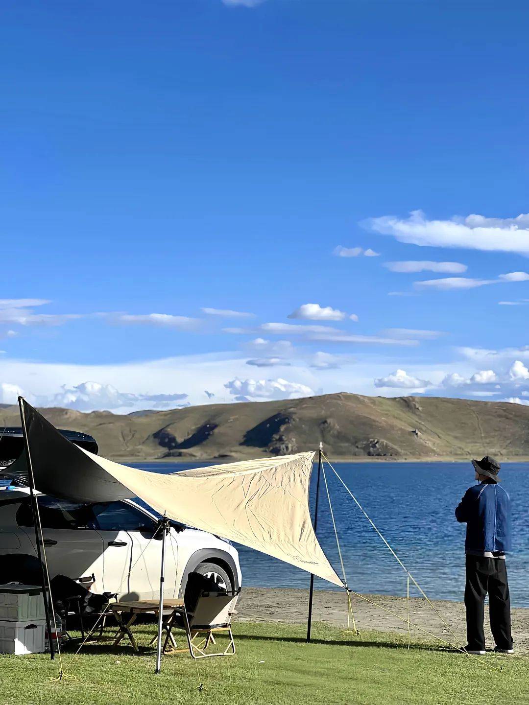 在湖边平原搭起帐篷,放眼望去