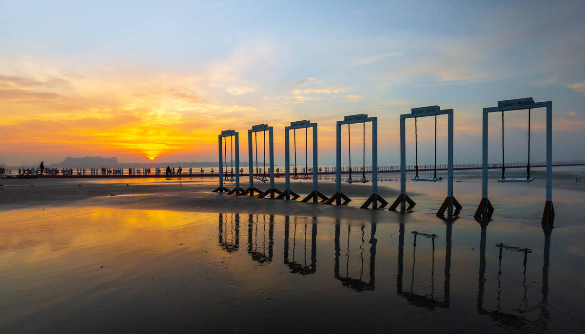 近几年银滩大拇指海水浴场新修葺沙滩秋千