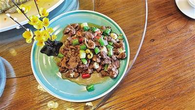 炒鹿肉,菜品选用当地养殖鹿为食材精心烹制而成。鹿肉肉质细嫩、味道鲜美、含有丰富的蛋白质。结缔组织少,可烹制多种菜肴。鹿肉含有较丰富的蛋白质、脂肪、无机盐、糖和一定量的维生素,且易于被人体消化吸收。