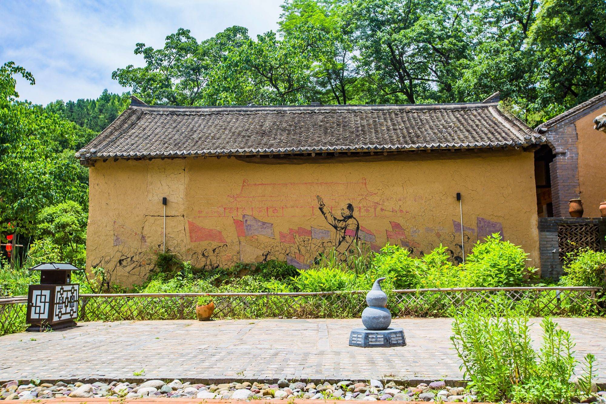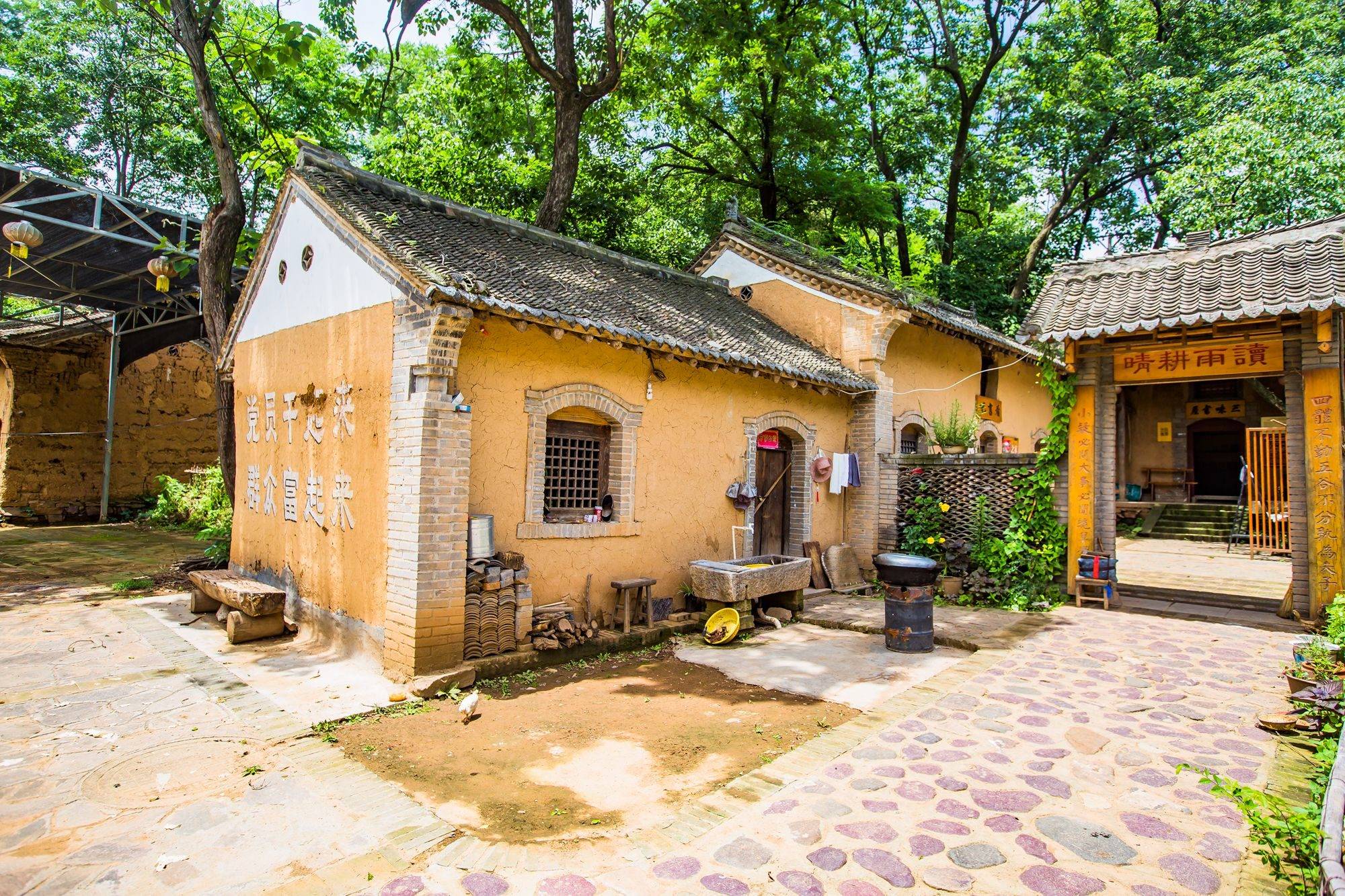 墙壁上的彩绘和标语都充满了年代感,一句“为人民服务”更是将人们带回到几十年前的岁月中,没有丝毫商业气息,完全就是一个山村中最有烟火气,最接地气的小村庄。