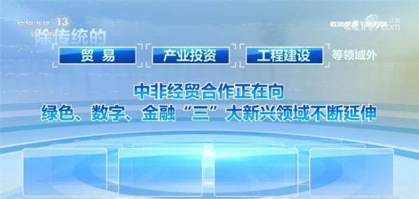 除了传统的贸易、产业投资、工程建设等领域外,中非经贸合作正在向绿色、数字、金融“三”大新兴领域不断延伸。