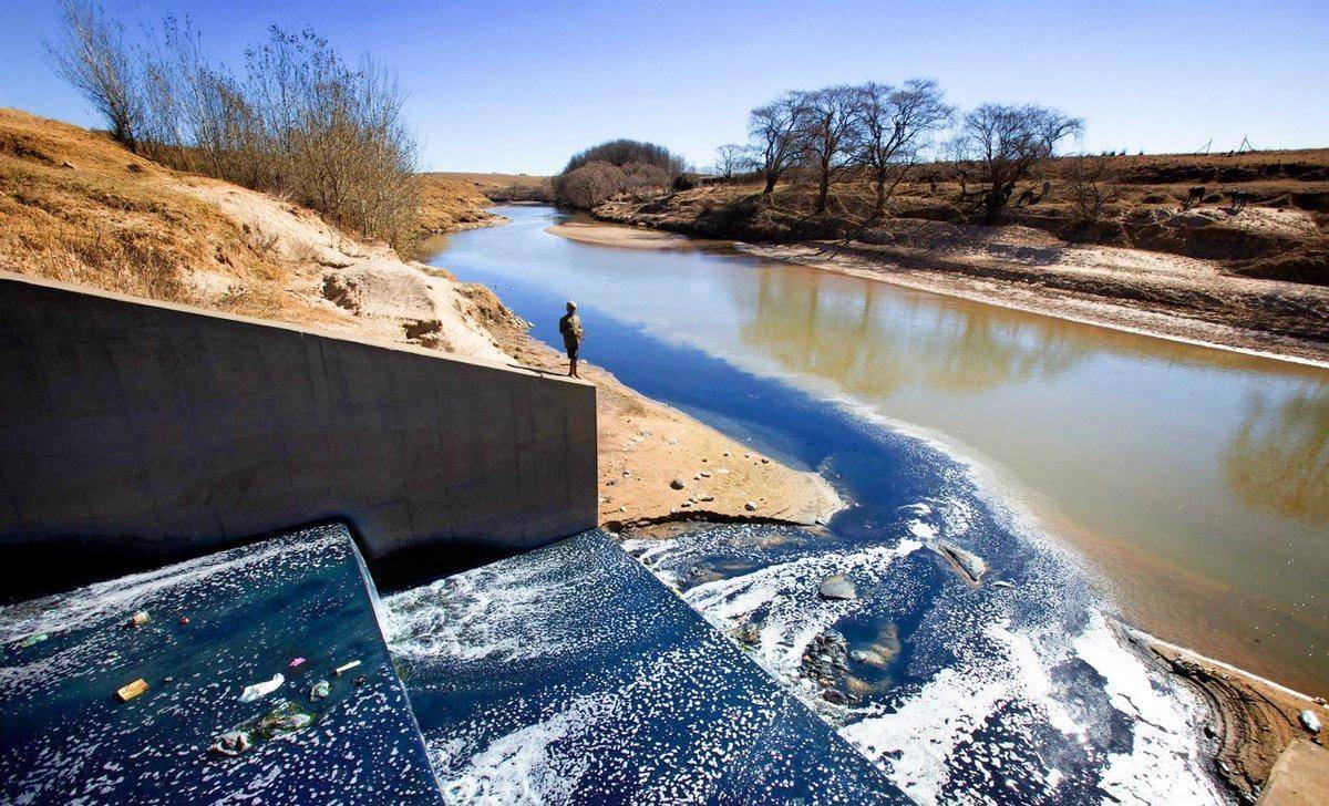 非洲莱索托的一条河流被牛仔蓝染料污染。资料来源:水见证国际