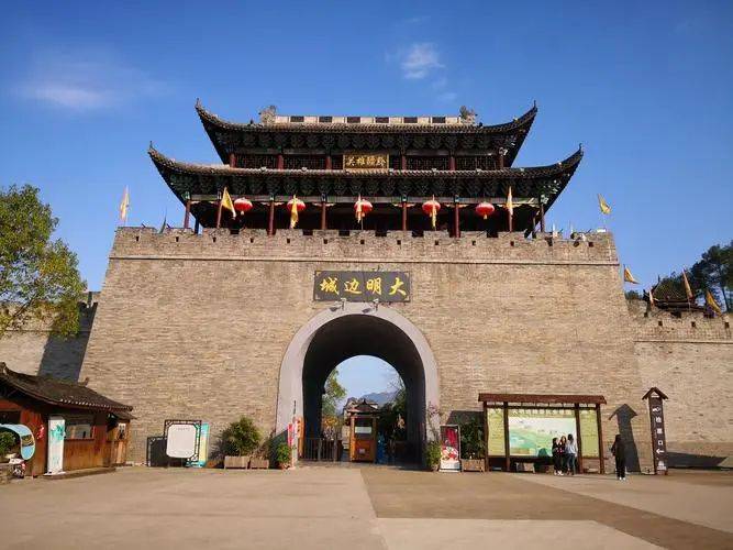 大明边城位于贵州省铜仁市碧江区东郊。大明边城项目负责人曾勇告诉记者:“现在已经开发成餐饮娱乐为主的休闲景区。未来将在景区打造土司、军屯、农耕、渔猎、商贾驿站等文化元素,让游客能体验和感受不同的习俗和文化。”