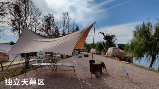 这里配套的设施不少,有天幕、帐篷、投影,还有专门为孩子们打造的YOYO乐园,一边溜娃一边露营,吃吃喝喝,好不惬意!如果你不想跑太远,只想轻松露营,那这里会是不错的选择。