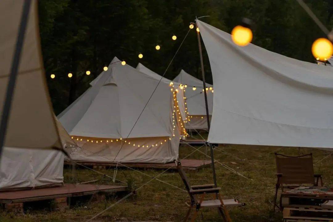 夜幕降临,繁星点点,听着音乐,林风清凉。山野的夜晚热烈而浪漫,有篝火派对、帐篷酒吧、烧烤夜宵、星光露天电影,轻松享受夏日惬意的露营生活。
