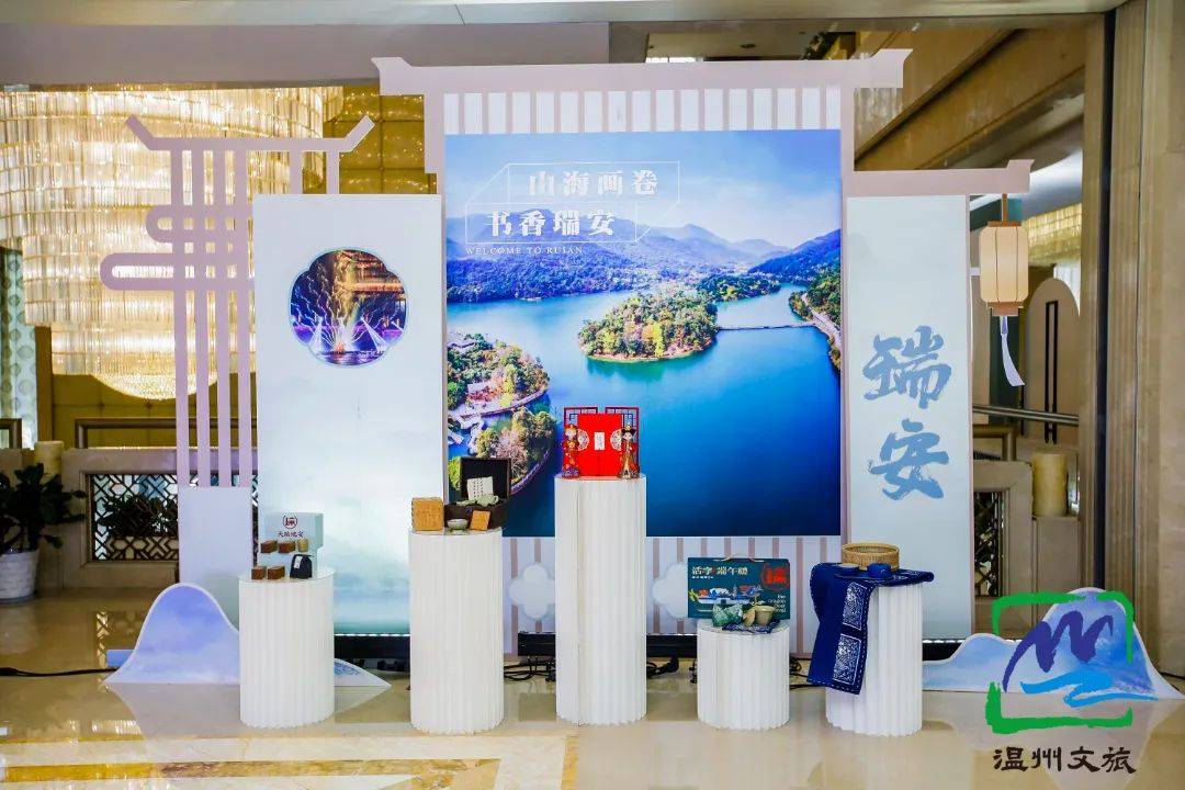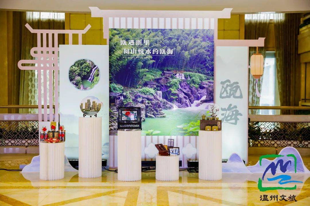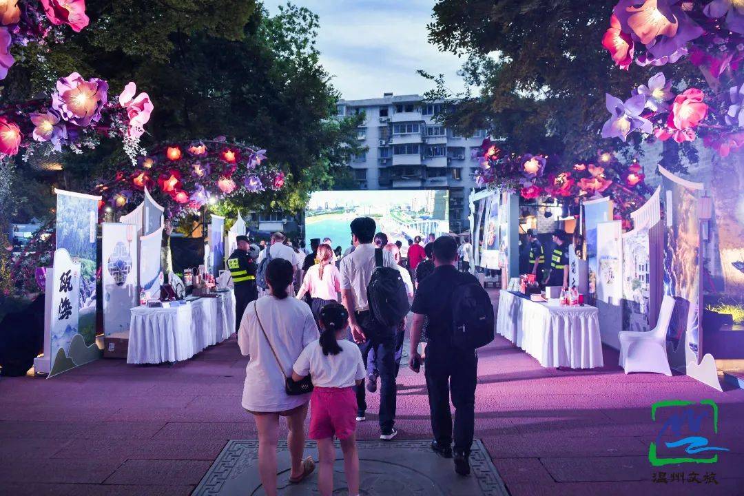 舞台周边的文旅展区动静结合、生动呈现温州文旅在“浙江味道·百县千碗、浙韵千宿、浙派好礼、百家千艺、浙里千集”五方面的精彩文旅产品。