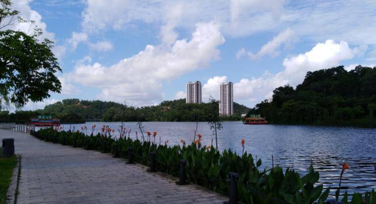 来到北湖公园放放风筝吧,这个不大的公园里有着围绕着整个公园的跑道,年轻人们在此跑步,老年人在慢慢地步行。阳江的风筝制作是有着悠久的历史传统的,每年风筝节大人小孩都会拿上自己用宣纸和竹子制作而成的风筝来到公园进行放飞。