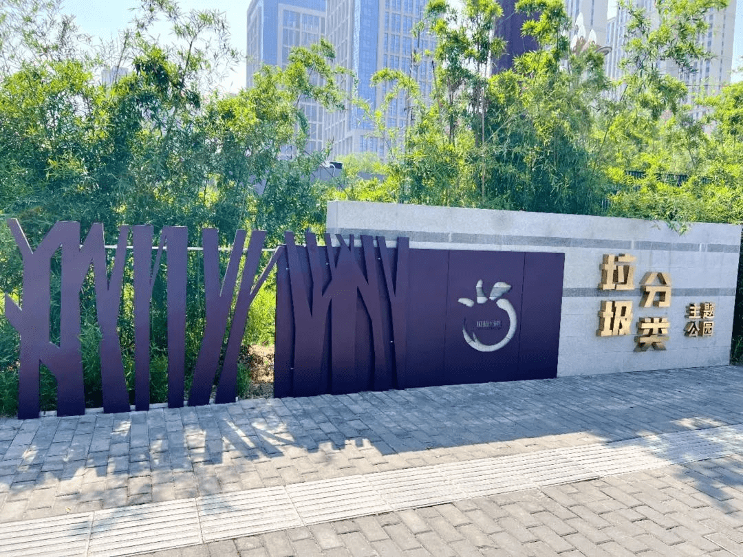 在保留原有绿地和景观的基础上,主题公园以生活垃圾分类为核心内容,集“科普性、功能性、美观性、参与性”于一体,内设垃圾分类景观小品、垃圾分类知识墙、趣味互动打卡点以及废旧轮胎改造的艺术景观,市民、游客在游玩健身的同时,还可以学习垃圾分类知识。