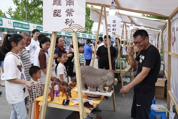 本次活动特邀多位非遗传承人,现场进行非遗展演展览。王氏制扇、唐氏竹编、四合大曲酿造、皖南竹刻、梨山林氏腐乳等15个国家级、省级非遗工艺品齐聚一堂。广德黄金芽、猕猴桃果酒、金龙山野葛粉、正文红薯宽粉条等15个土特产展台,打响广德本土特产声誉,展位前人流络绎不绝,市民们纷纷驻足品尝选购。老张冷饮、来客饼、卷面皮、冰粉、冰汤圆等30种特色美食,以诱人的香气吸引着市民朋友。