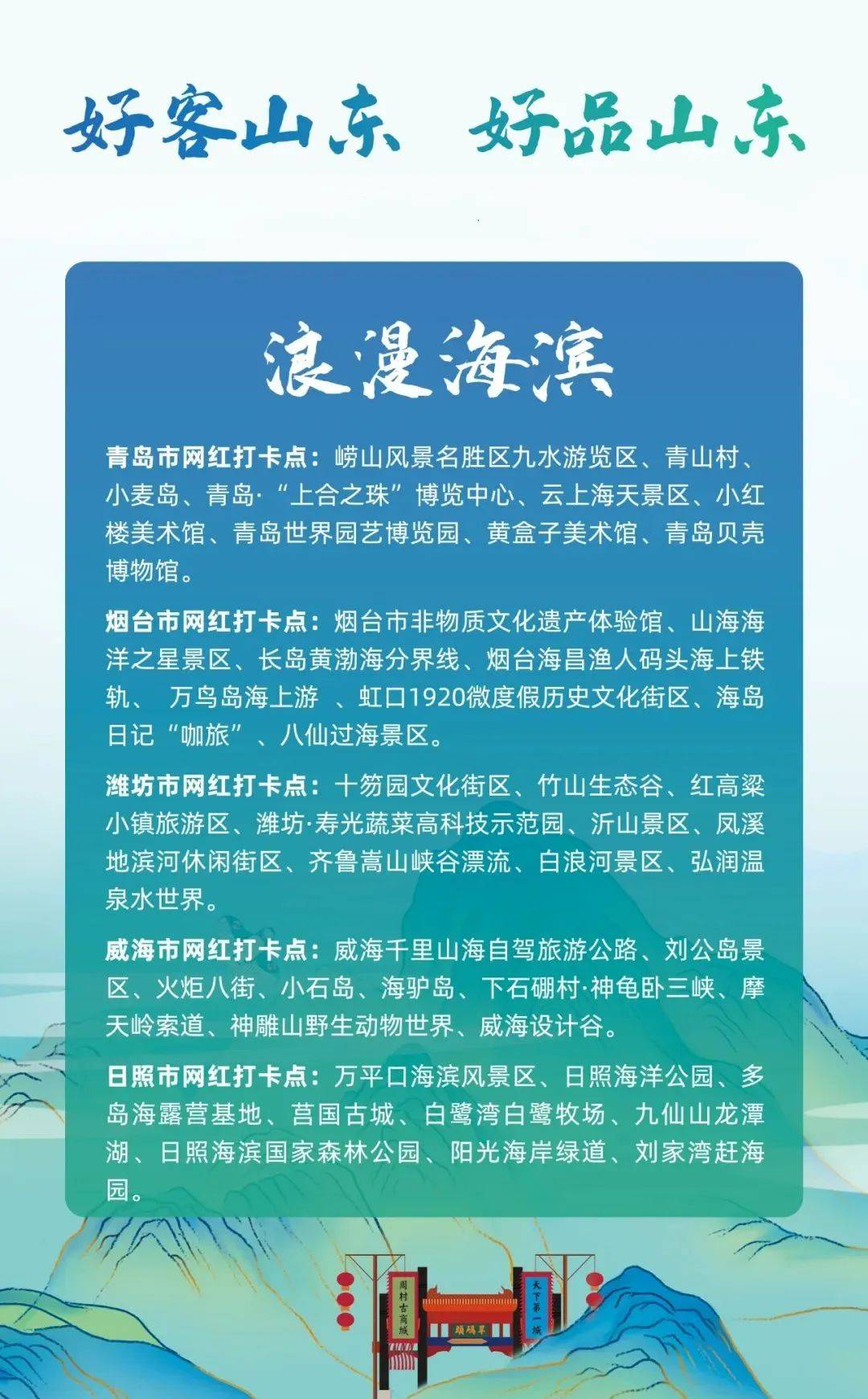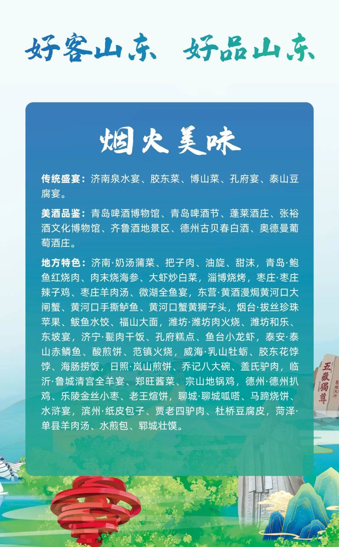 如此多彩的齐鲁之行,定会让你的暑期精彩加倍。让我们一起打卡“好客山东”,感受齐鲁风情。