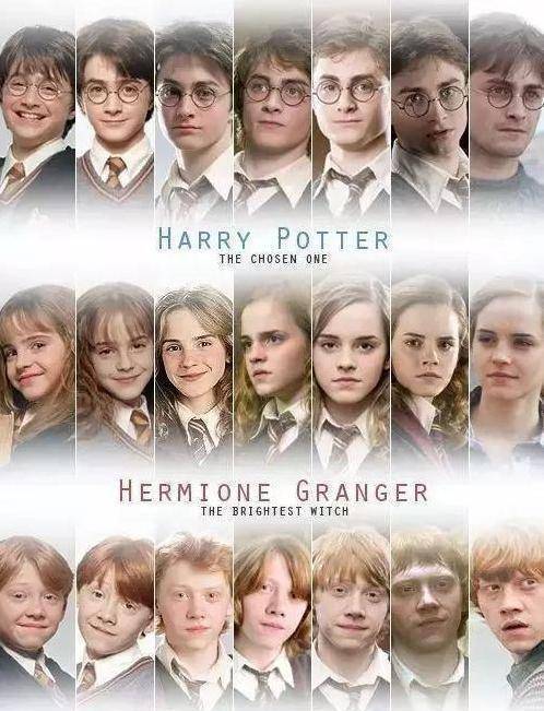 最难得的是,作为跨度长达10年的作品,除了邓布利多的饰演者因病去世外,主要角色的饰演者,从第一部到最后一部都没变过。