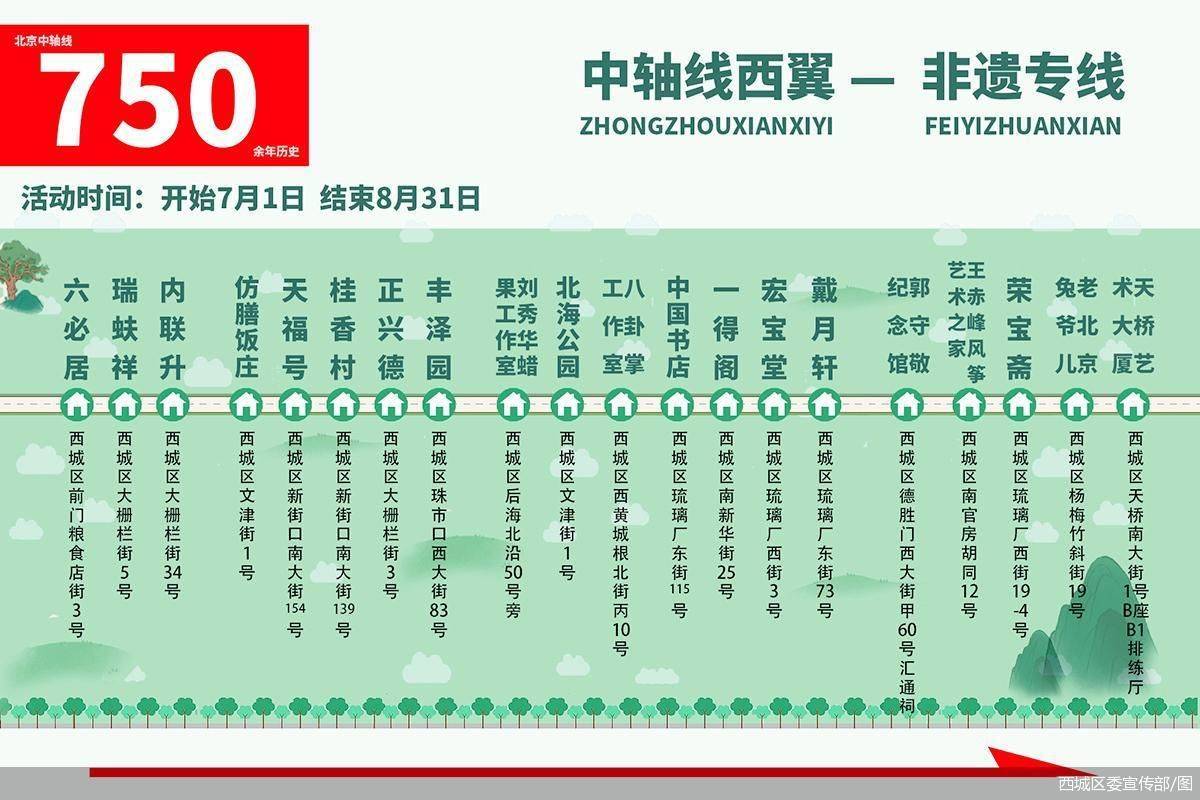 据了解,本次《中轴西望—时光里的非遗》路书体验活动从7月1日启动持续到8月底。