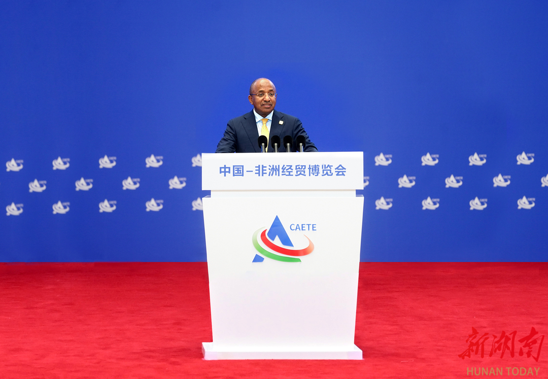 坦桑尼亚桑给巴尔总统姆维尼致辞。 姆维尼在致辞中说,很高兴能够来到湖南,亲身感受中非经贸合作的蓬勃发展。中国和非洲各国一直竭诚努力为中非合作共赢、共同发展注入新动力。在全球疫情影响下,中非双方经济合作仍保持强劲的势头,给双方带来了真真切切的实惠。感谢中非经贸博览会提供了一个实现各方共同目标的理想平台。非洲大陆资源丰富,与中国合作潜力巨大,欢迎更多的中国企业与非洲当地企业在投资、贸易、制造业等方面进一步深化合作,扩展经贸往来。明年中坦将迎来建交六十周年,希望通过本次中非经贸博览会进一步加强双方多层次、多领域的合作。