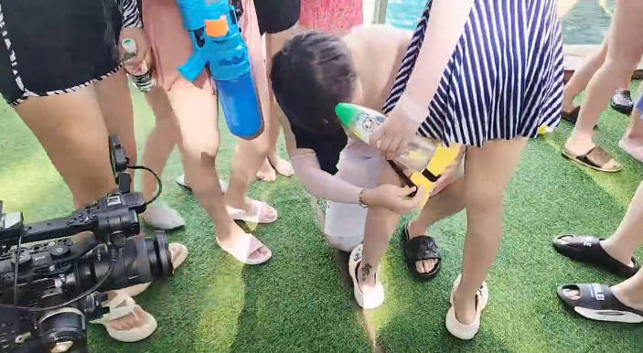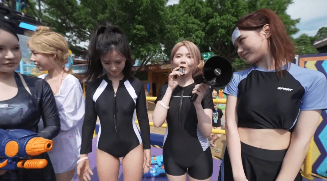 她们在第一天的水上嘉年华活动中,就在阿布的安排下,进行了一场由所有美女主播泳衣出镜,用水枪把海绵浸透,再让女队员用大腿夹住海绵,把水挤出来的比赛!由于获胜方能在此次活动中,获得非常丰厚的奖励,因此这些女主播了解相应的比赛规则之后,立刻就换上了泳衣准备一较高下。