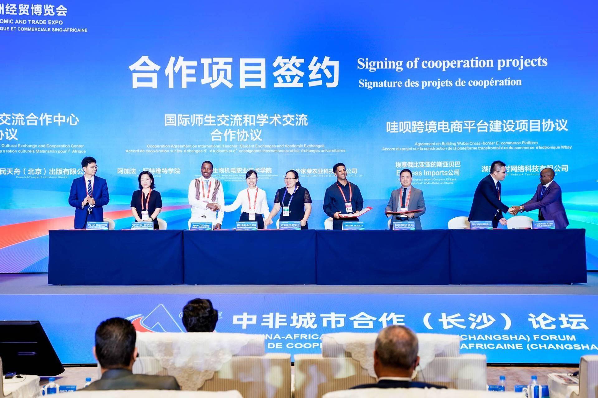 论坛上,中非双方城市发布了《中非城市合作长沙倡议》,长沙市人民政府与乌干达恩德培市政府、马里锡卡索市政府进行了友好城市签约,马栏山对非文化交流合作、国际师生交流和学术交流合作、哇呗跨境电商平台建设、红星直采肯尼亚牛油果等四个项目进行了合作签约。