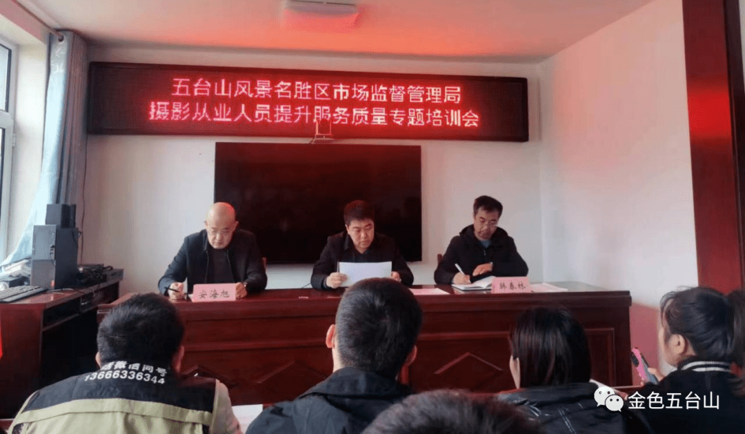 4月4日,五台山风景名胜区市场监督管理局组织召开旅游摄影从业人员提升服务质量专题培训会,共有40家旅游摄影从业单位人员参加培训。