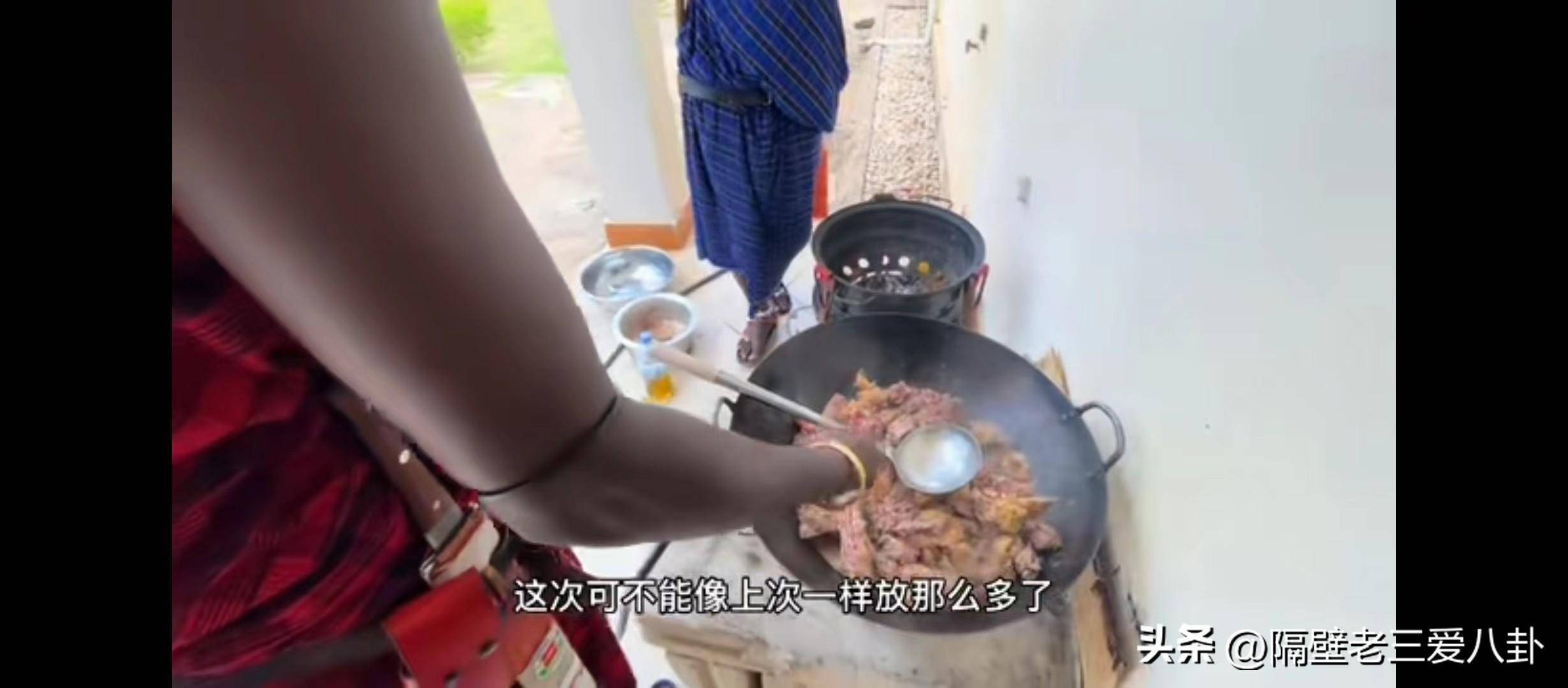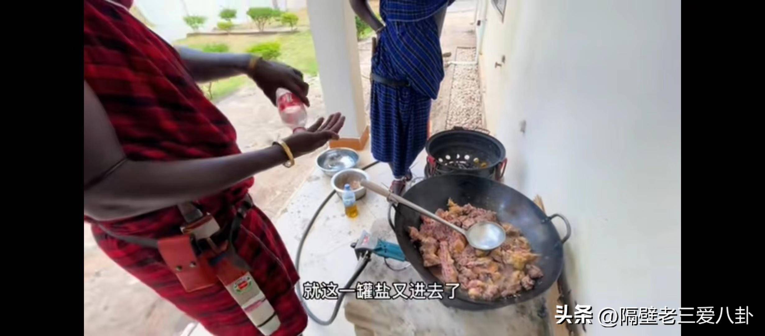 我记得小吴问他们不咸吗?答案:穆祖里,穆祖里太多了![笑]后来我才知道,生活在非洲大草原上的原始部落通常不用盐做饭,而是用一种类似盐的植物作为香料。然后是盐,他们觉得非常好吃,这就是为什么伍德非常喜欢我们的酱油,什么都喜欢沾酱油!但其实,对于他们草原上的原始部落来说,他们对于肉食有着最原始的烹饪方法:那就是什么都不放,直接煮,不加调料!