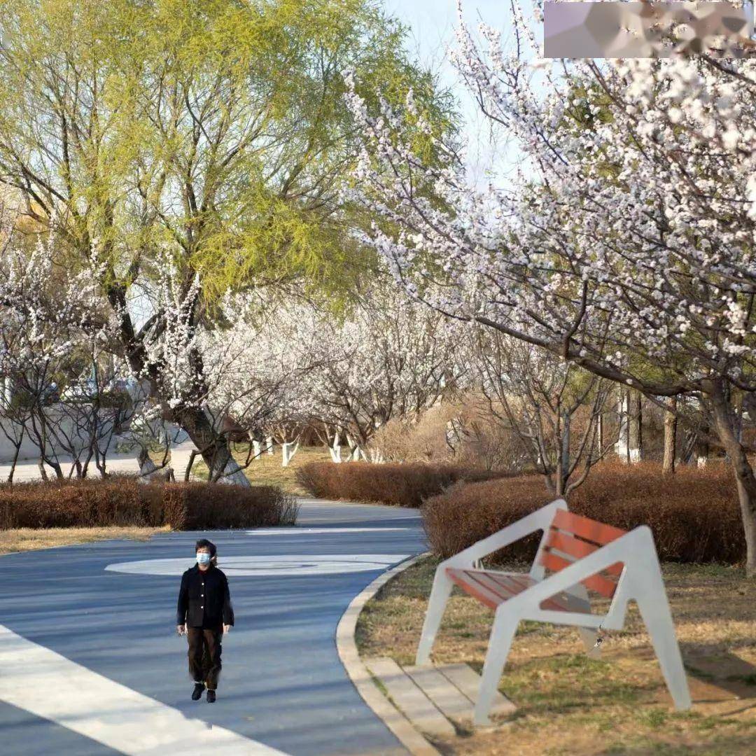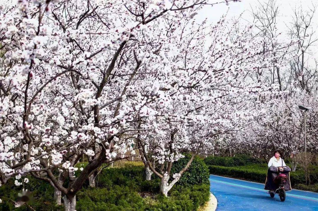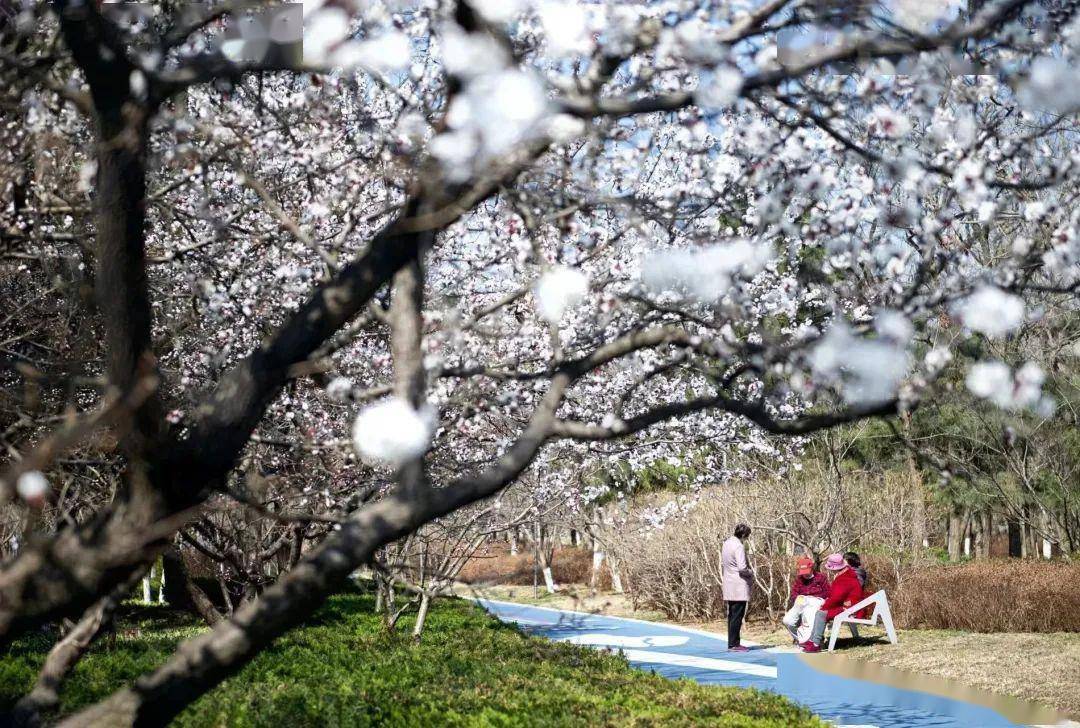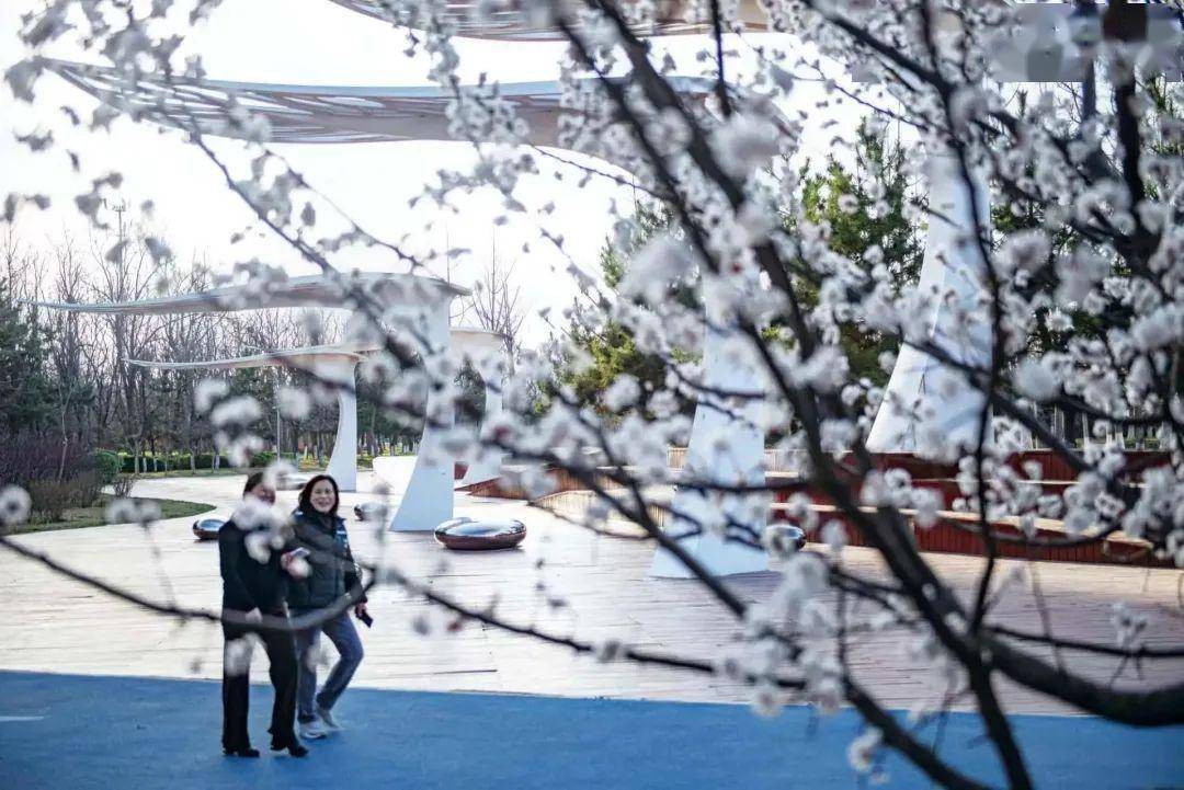 烟台黄渤海新区金沙滩公园,在更新改造中增添了许多树种和花种,每年春季开始,先后有成片的杏花、梅花、槐花等各色花种粉墨登场,竞相开放。