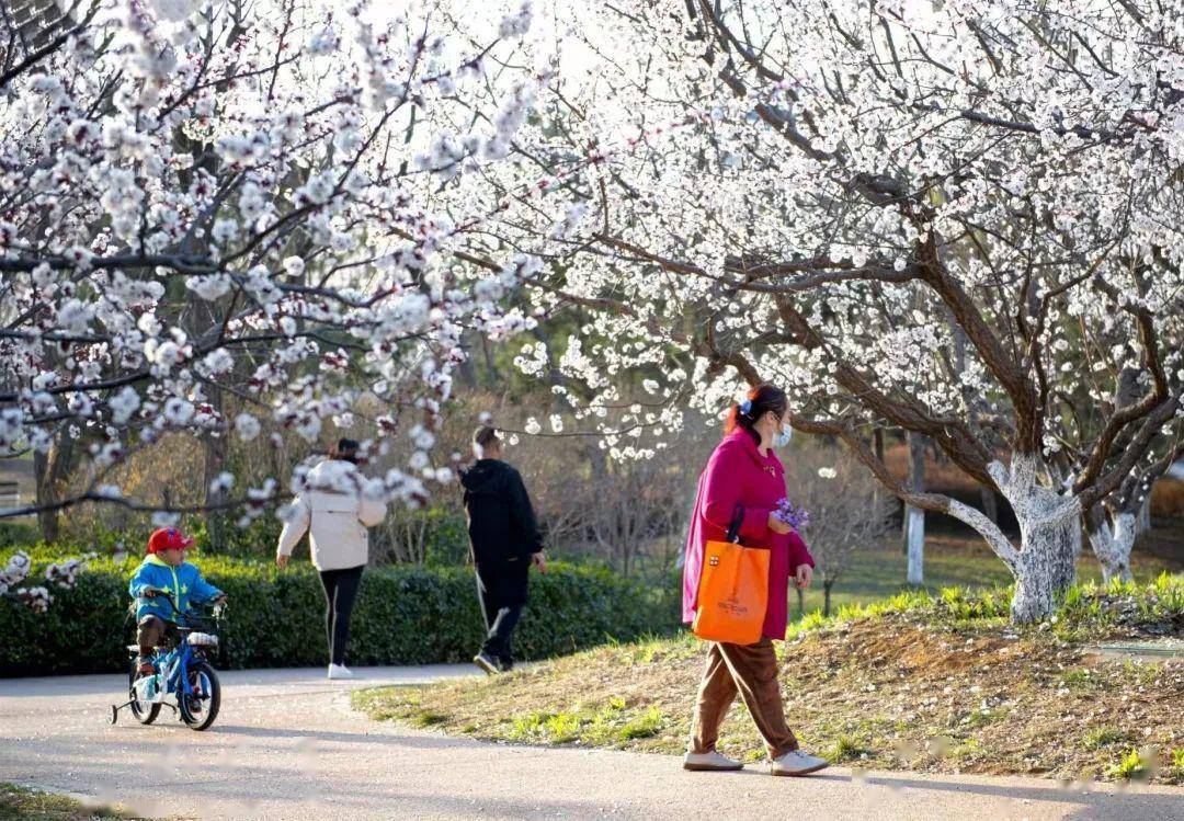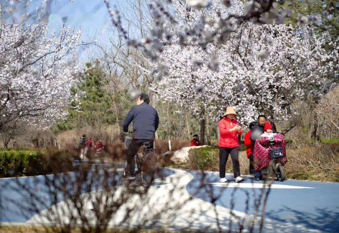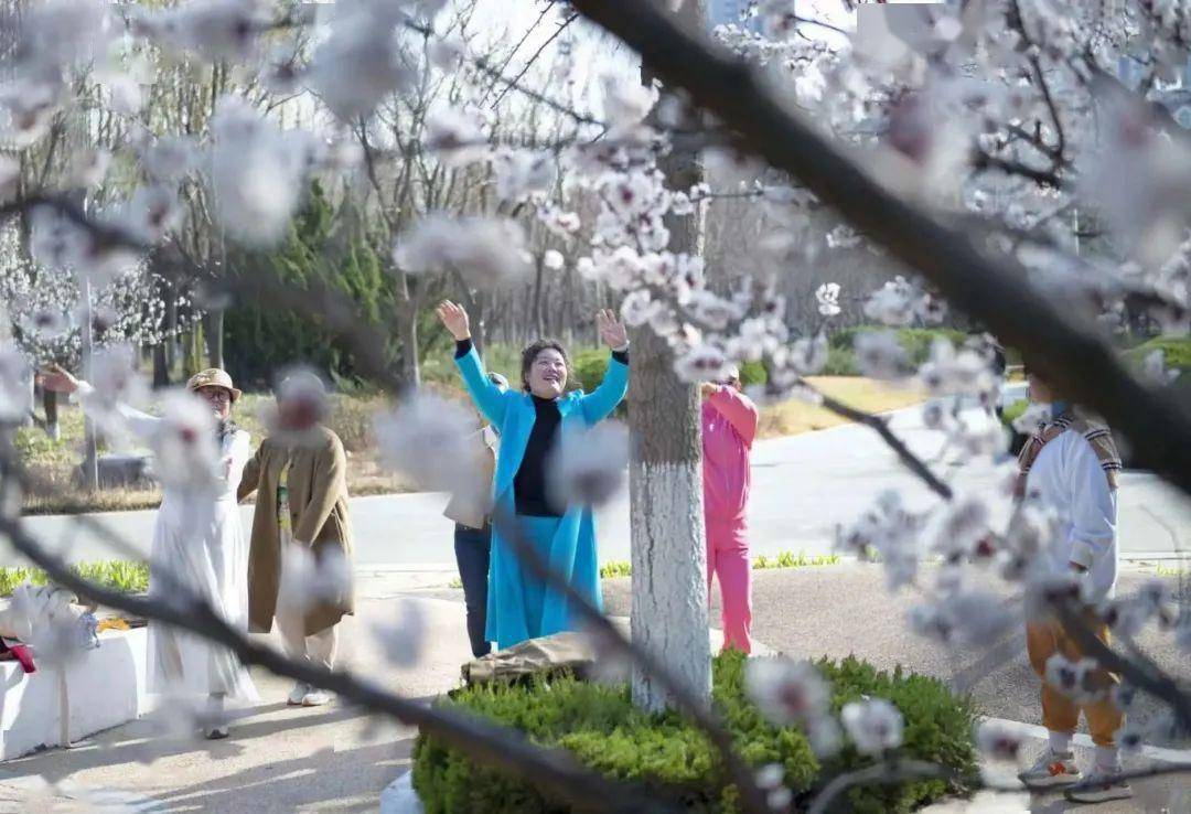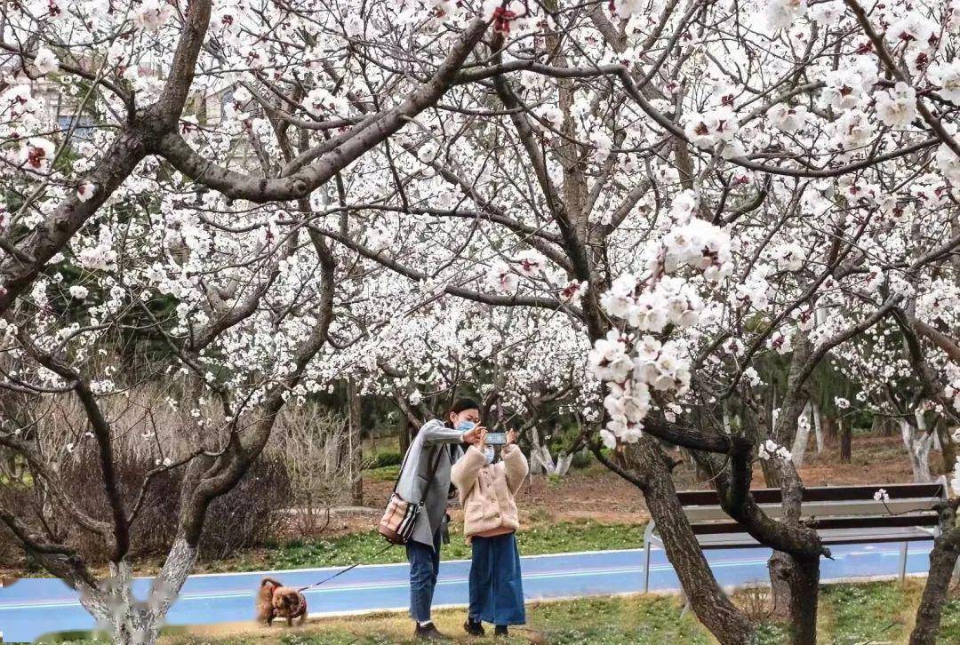 烟台黄渤海新区金沙滩公园,在更新改造中增添了许多树种和花种,每年春季开始,先后有成片的杏花、梅花、槐花等各色花种粉墨登场,竞相开放。