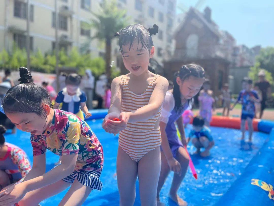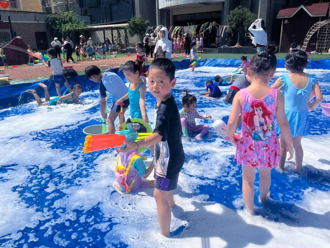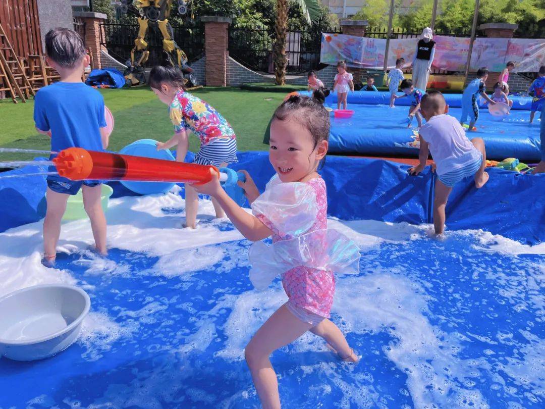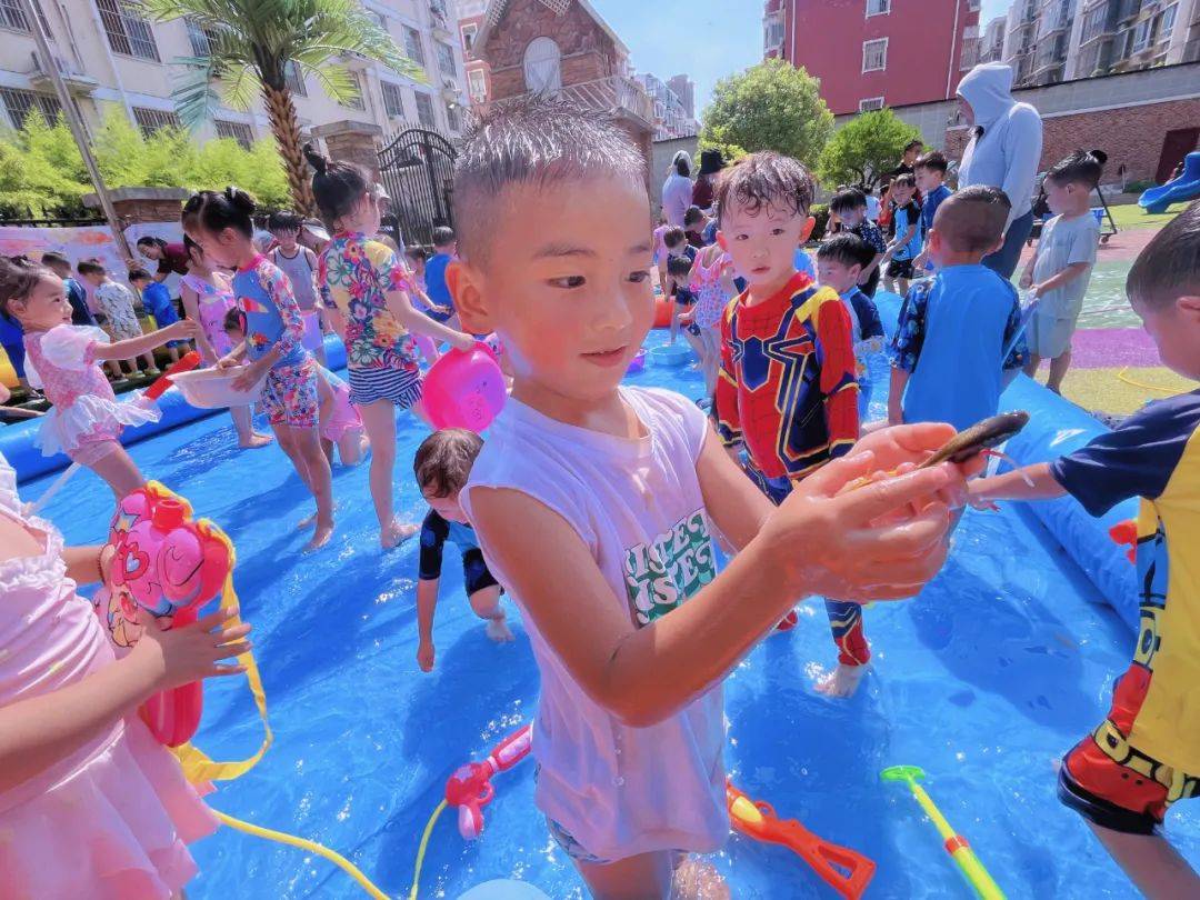 为了让孩子们在炎炎夏日里与水亲密接触,感受水的特性,在水的世界里徜徉,在水的游戏中成长,享受夏日的清凉与热情。2023年6月30日,蓝澄幼儿园开展了“欢乐童年,戏水狂欢”活动。