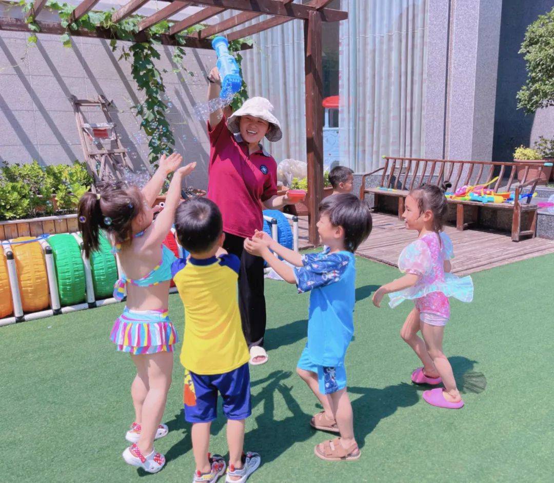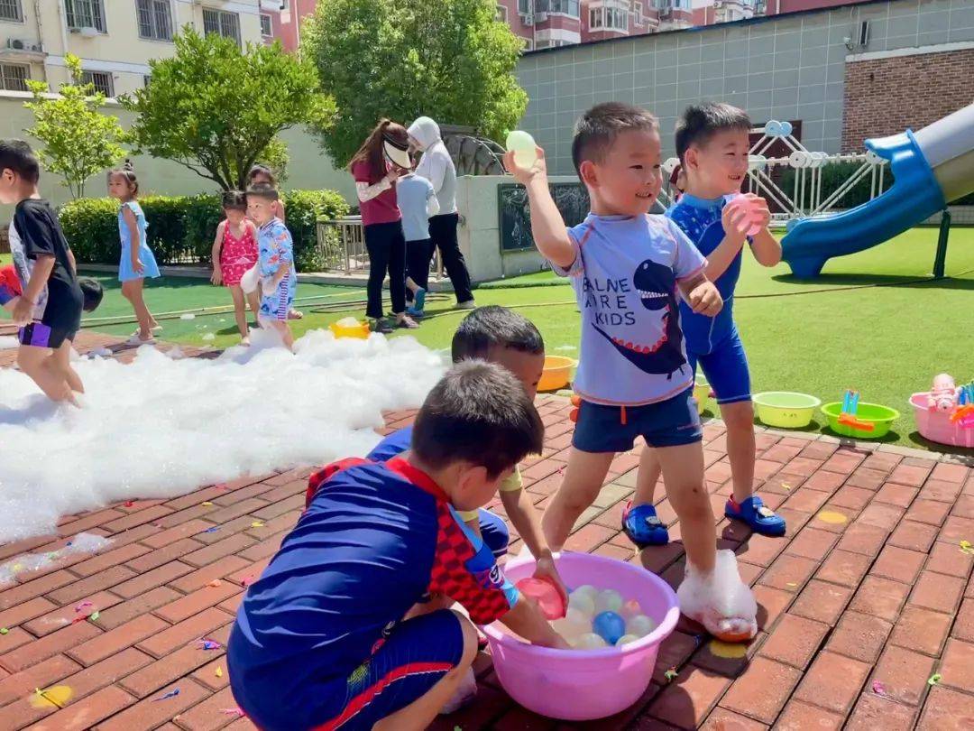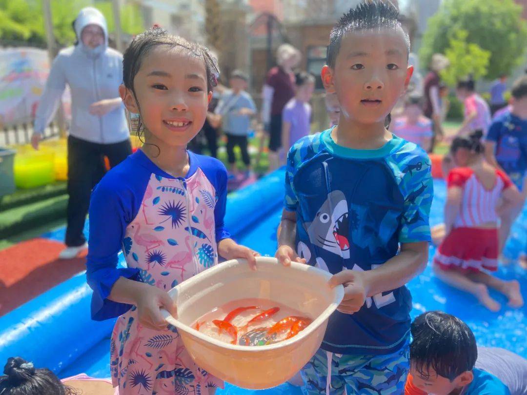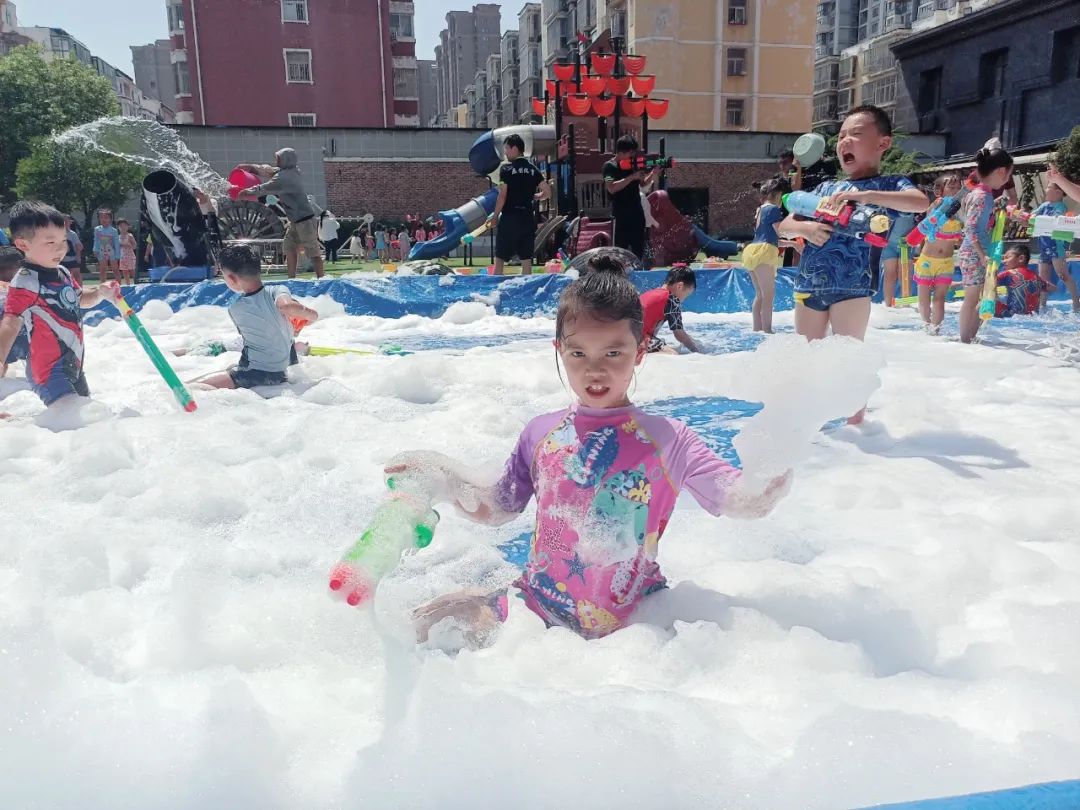 为了让孩子们在炎炎夏日里与水亲密接触,感受水的特性,在水的世界里徜徉,在水的游戏中成长,享受夏日的清凉与热情。2023年6月30日,蓝澄幼儿园开展了“欢乐童年,戏水狂欢”活动。