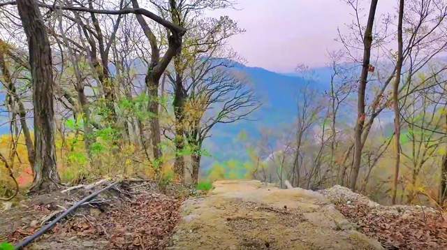 继续向上攀登,山路开始呈现出分叉的状态。因为这个区域的山脊坡度不大,且山体表面鲜有灌木丛,从露出的泥土成色看,近一年内估计是动了大型工程。掩不住好奇,小编顺着这个翻动过泥土的区域走动,很快就走了一大半,路面还算平整。从距离和面积看,这个区域是要建设建筑,大概有半个篮球场大,周边是开凿出的巨石,已经被打破,压在地表做地基;而地面上,砂石、泥土、树枝混合,长出了一丝绿色。跨过去,前面又看到一条更狭窄的山道,被树叶掩埋。